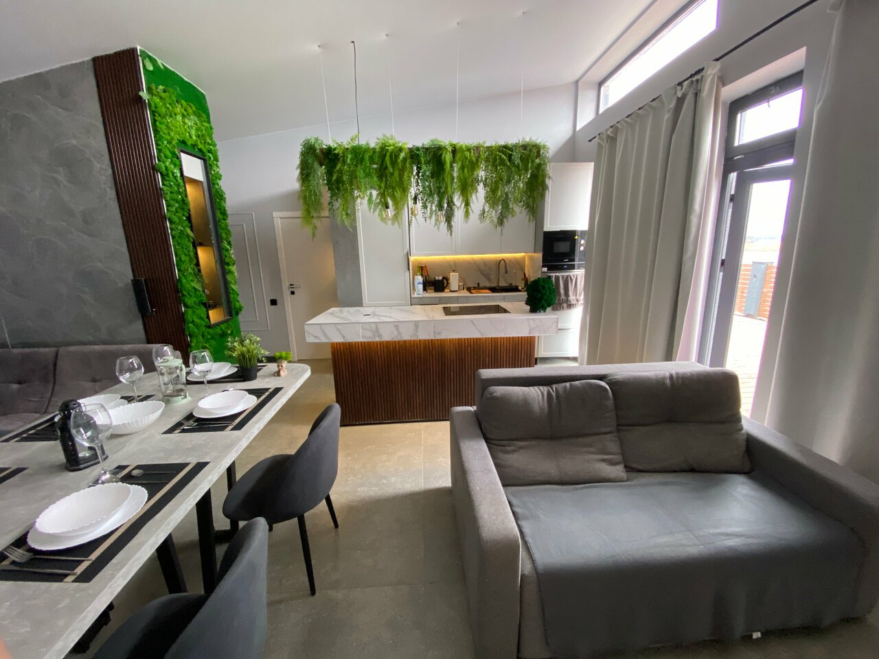 - Полная комплектация для комфортного проживания (посуда, техника, текстиль).