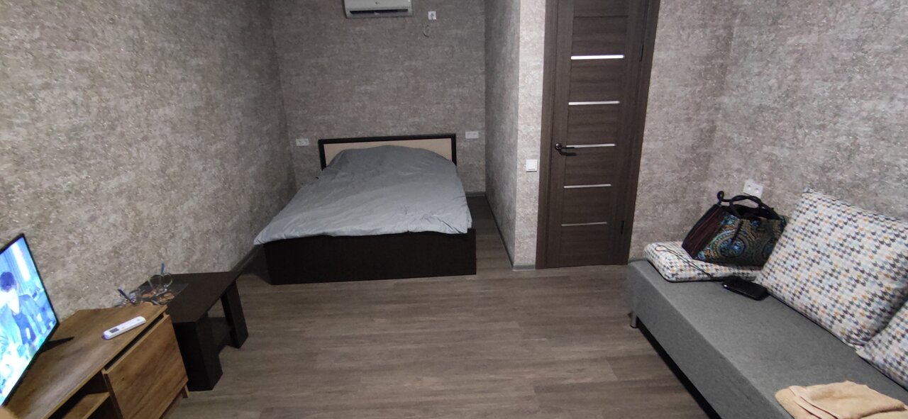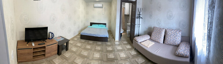 Прекрасное место для отдыха. Просторная комната с кондиционером, двуспальной кроватью и диваном, который превращается в удобное двуспальное место. Есть сан узел с душем, Эл. чайник (пакетики чая и сахар), телевизор. Приветливый и отзывчивый администратор.