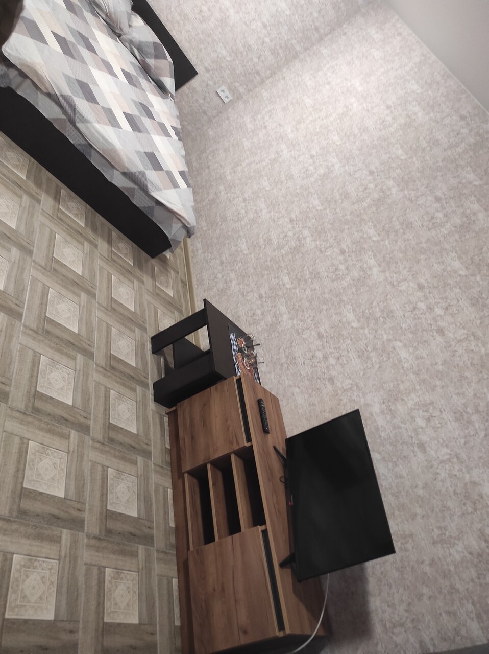 Относительно новая гостиница, в номере чисто, двухспальная кровать, диванчик, телевизор, чайник, стаканы, кондиционер. Санузел в номере. Один минус, нет кафе, чтобы после дороги покушать и отдыхать. У администратора в комнате стоят на продаже дошираки, сок, печенюшки,