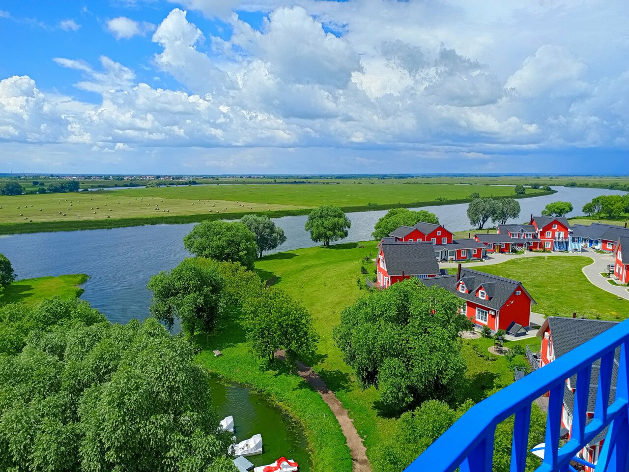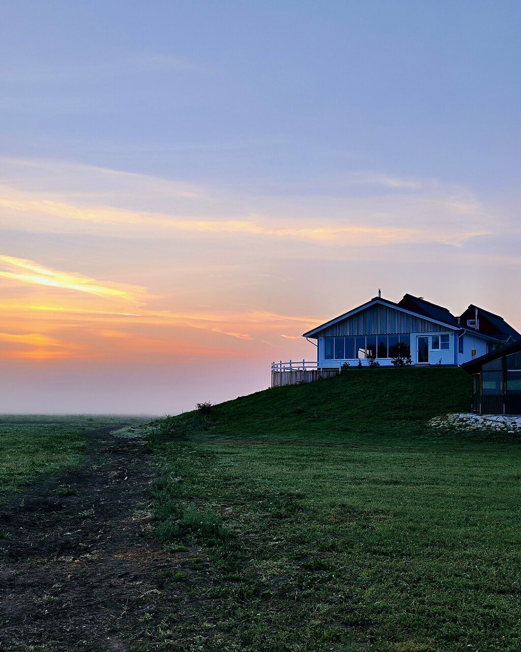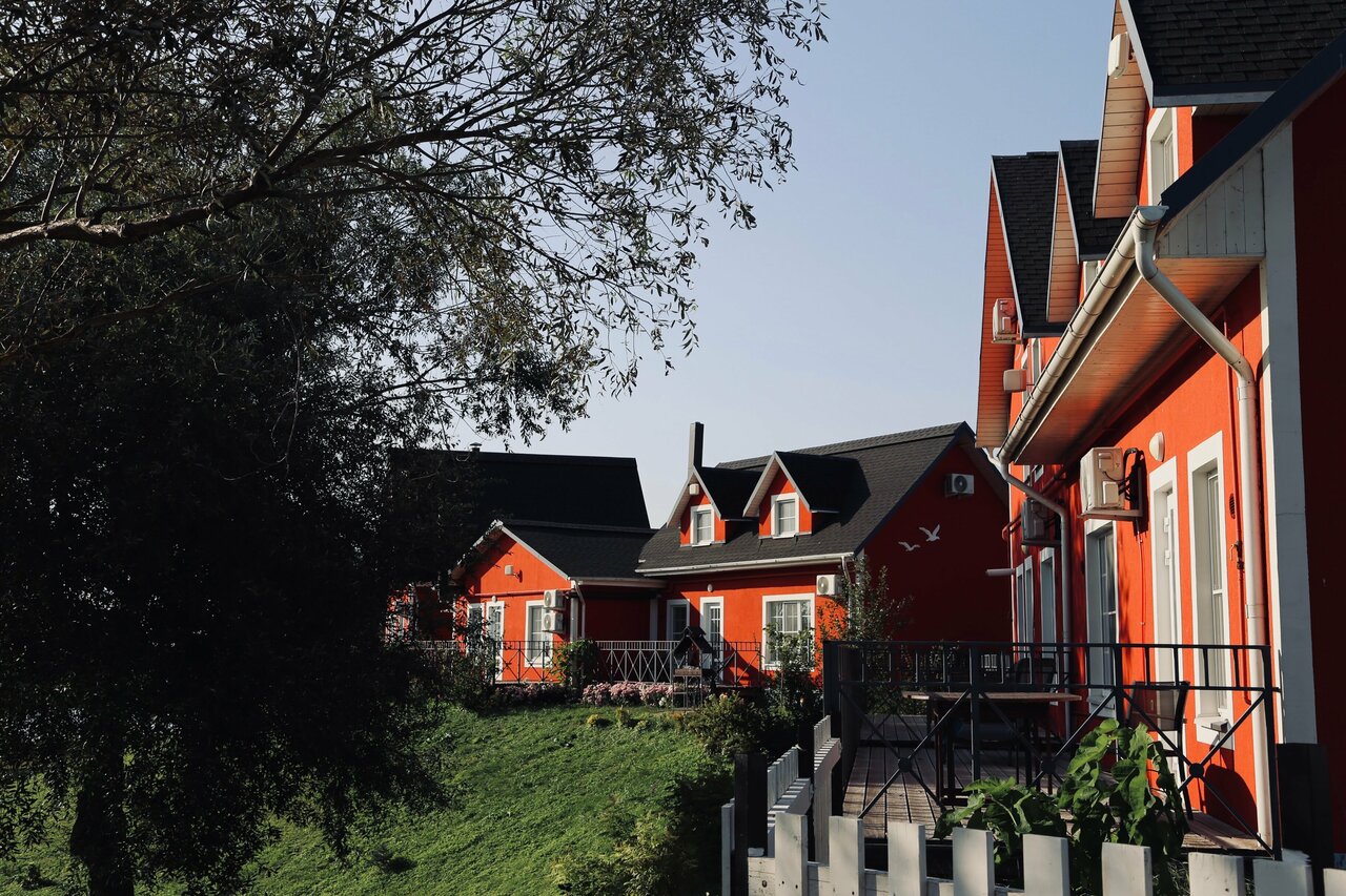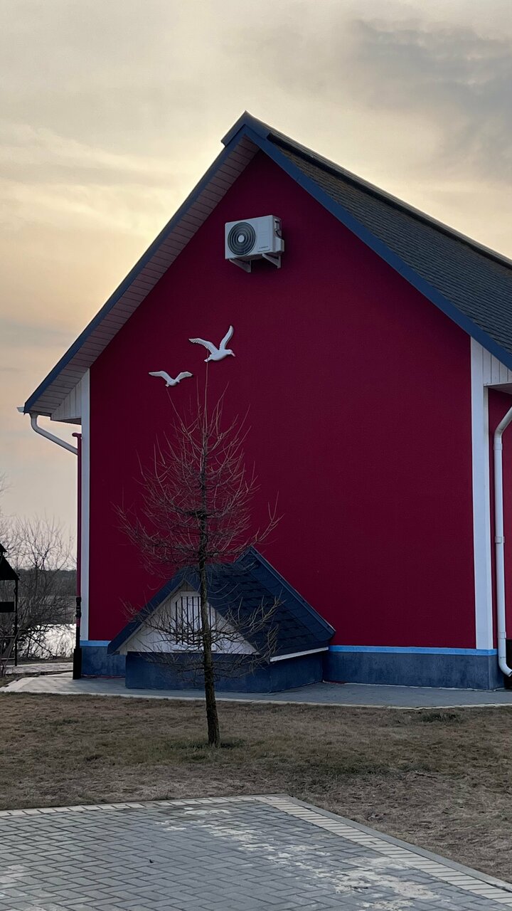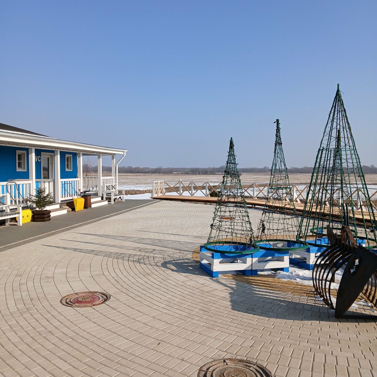 Прикольное место в плане идеи и реализации. Номера очень понравились. Завтраки отличные. Есть своя пристань, лодки и сапы — отличное развлечение. Рядом поле/кони/сенокос. Удобно если в планах покататься по округе — рязань и солотча под боком. Местечко крайне живописное. Иногда над головой на посадку заходят бомбардировщики — маяк для них ориентир. Нам с ребенком понравилось, супруге не зашло особенно их ночные учения взлет-посадка. Из минусов странный рестик — к еде вопросов нет даже наоборот, но меню прям странное, не каждому зайдет. Альтернативы — шашлычить самому? Ну такое не за тем ехали. И просто тьма гнуса повсюду — что на улице что в номере. Куча людей которые приезжают на выходных просто поглазеть. Домики в стадии недостроя немного удручают.