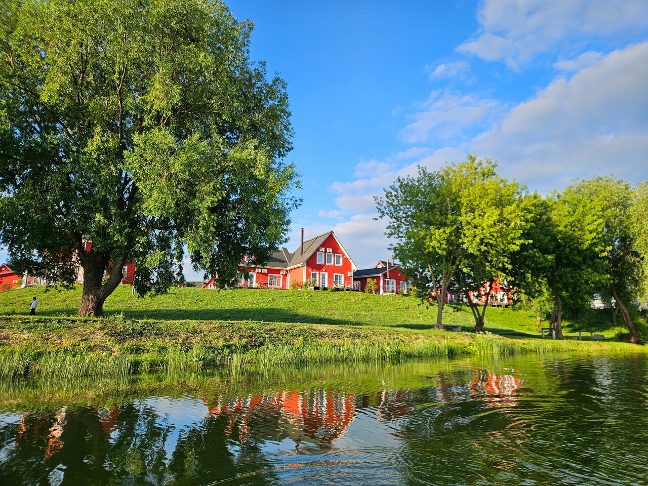 Смотрится красиво, конечно. Аккуратно, как кусочек Европы. Но цены, скажем так, не всем по карману. Не-жителям погулять внутри нельзя, но снаружи или с маяка посмотреть хватит. Летом, скорее всего, прокат лодок или что-то такое есть, потому что есть причал. Заехать на полчаса по дороге — норм, специально ехать — ну вряд ли