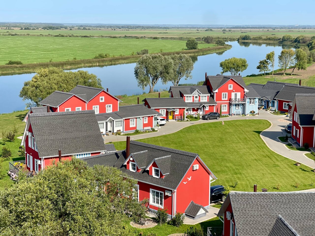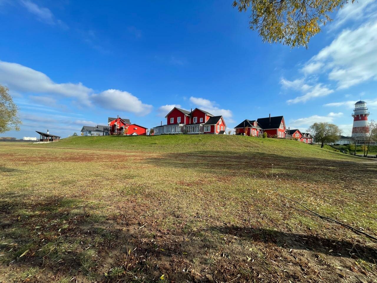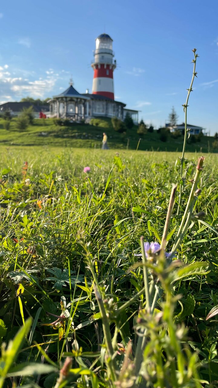 Колоритное место. Красивые домики, рядом река, луга, поля. Подъем на маяк 200 с носа. На территорию с домиками заходить нельзя, но это и понятно: там люди оплатили аренду домиков, зачем им какие-то праздно шатающиеся люди. Съездить один раз, чтобы посмотреть и пофоткаться — можно