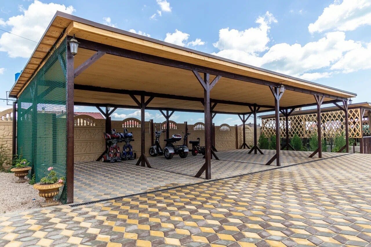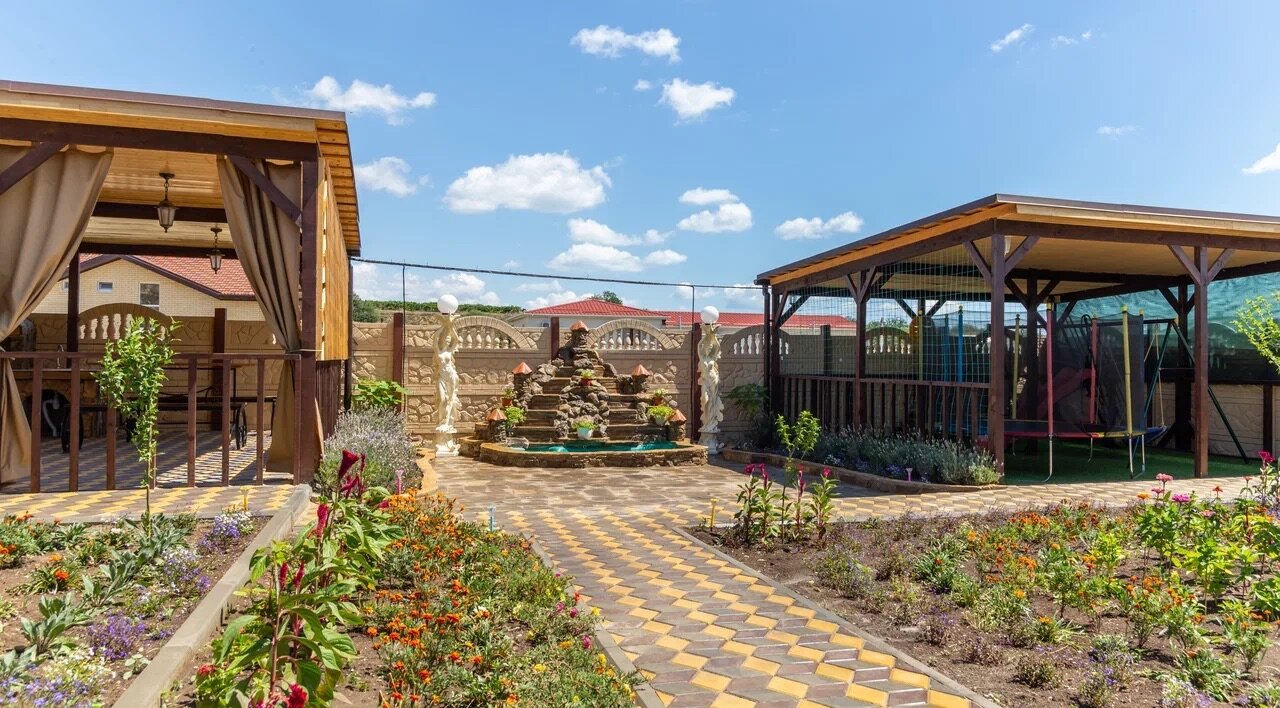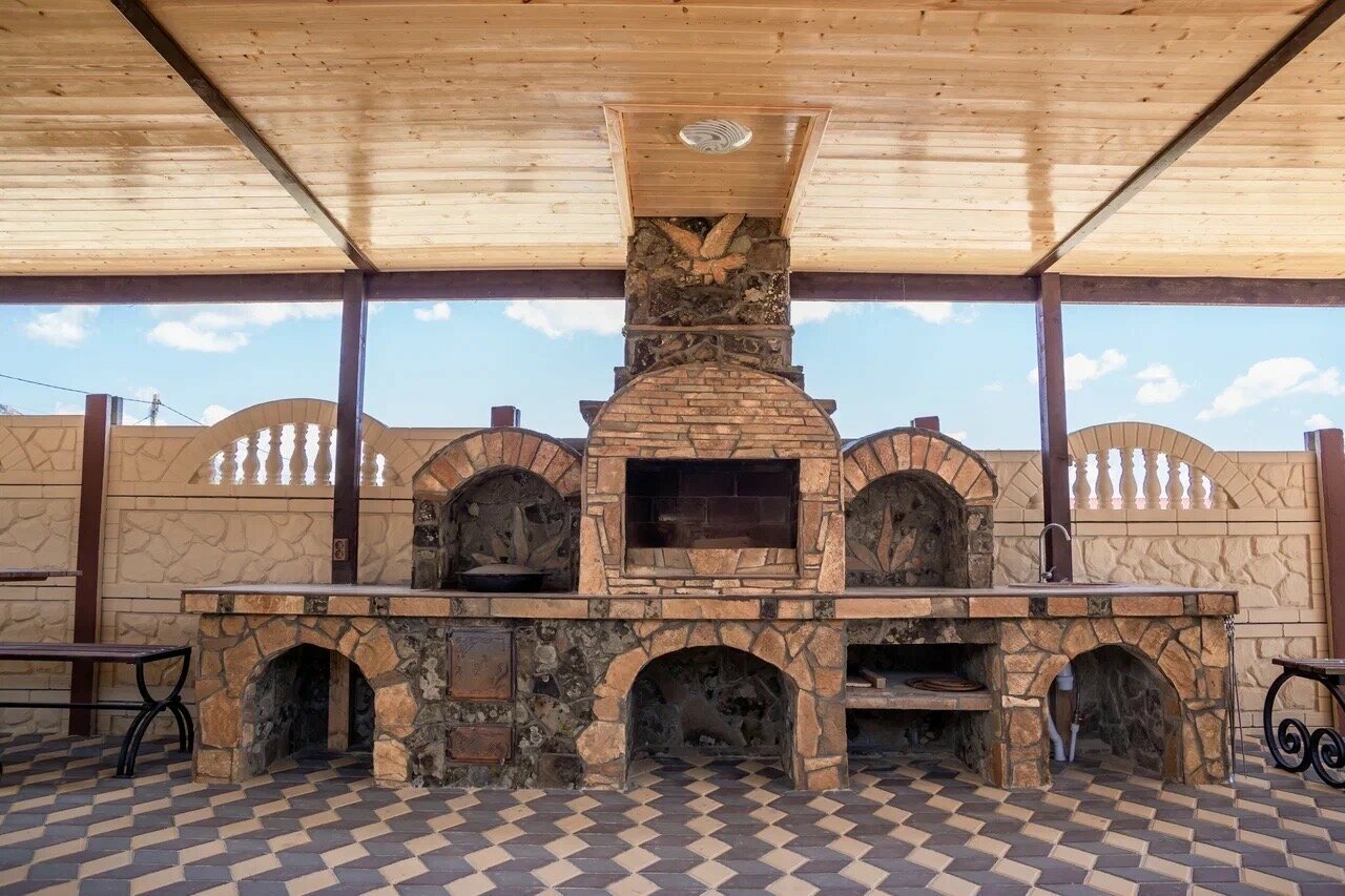 Новый комплекс, состоящий из 4 домиков. Жили в августе 2022, втроём. Очень красивое место, все на территории сделано для удобства гостей: огромная мангальная зона, детская площадка, фонтан, место для загара. Крытая парковка для авто, что защищает от солнца авто, это огромный плюс. В домике 2 отдельные спальни и кухня-гостиная, совмещённый туалет и душ. Вода есть всегда, подогревается. Фен. Холодильник маленький. Плита электрическая. Минусы: Вместо чайника кулер, нет настоящего кипятка. Если долго не пользоваться канализации- появляется запах (в нашем домике), сказали хозяйке — думаю исправят. Кондиционер напольный, и только в гостиной — его не хватает для нормального охлаждения даже гостиной, не то что спален. В любом случае, хозяйка однозначно устранит текущие проблемы, очень рекомендую к посещению