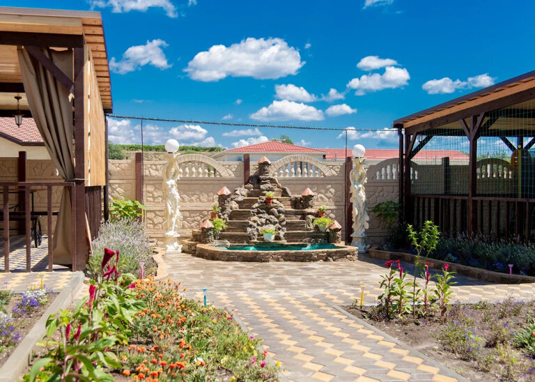 Продуманно всё до мелочей. Очень по домашнему. Есть всё необходимое. Большой двор с крытой парковкой. Фонтан, много зелени и зона барбекю с очень удобной и уютной посадкой. Хозяева очень приветливые и доброжелательные! Отдых удался на 200%. Рекомендую!