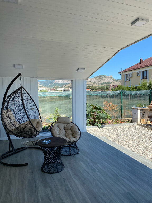 Благодарим за сервис и оказанные услуги! Мы остались очень довольны выбором гостиницы. Уютный, милый, абсолютно новый домик, вместимостью 7 человек с абсолютно оправданной ценой. Хозяин отзывчивый мужчина, пару раз очень выручил! В доме новое абсолютно всё, начиная от самого домика, заканчивая ложками и вилками. Своя территория с мангалом, вокруг домика цветы, на террасе новый столик,стулья, кресла. В общем обеденная зона — просто класс, а главное вид! Сидя за завтраком можно любоваться шикарный крымским рассветом. Советую в посещению