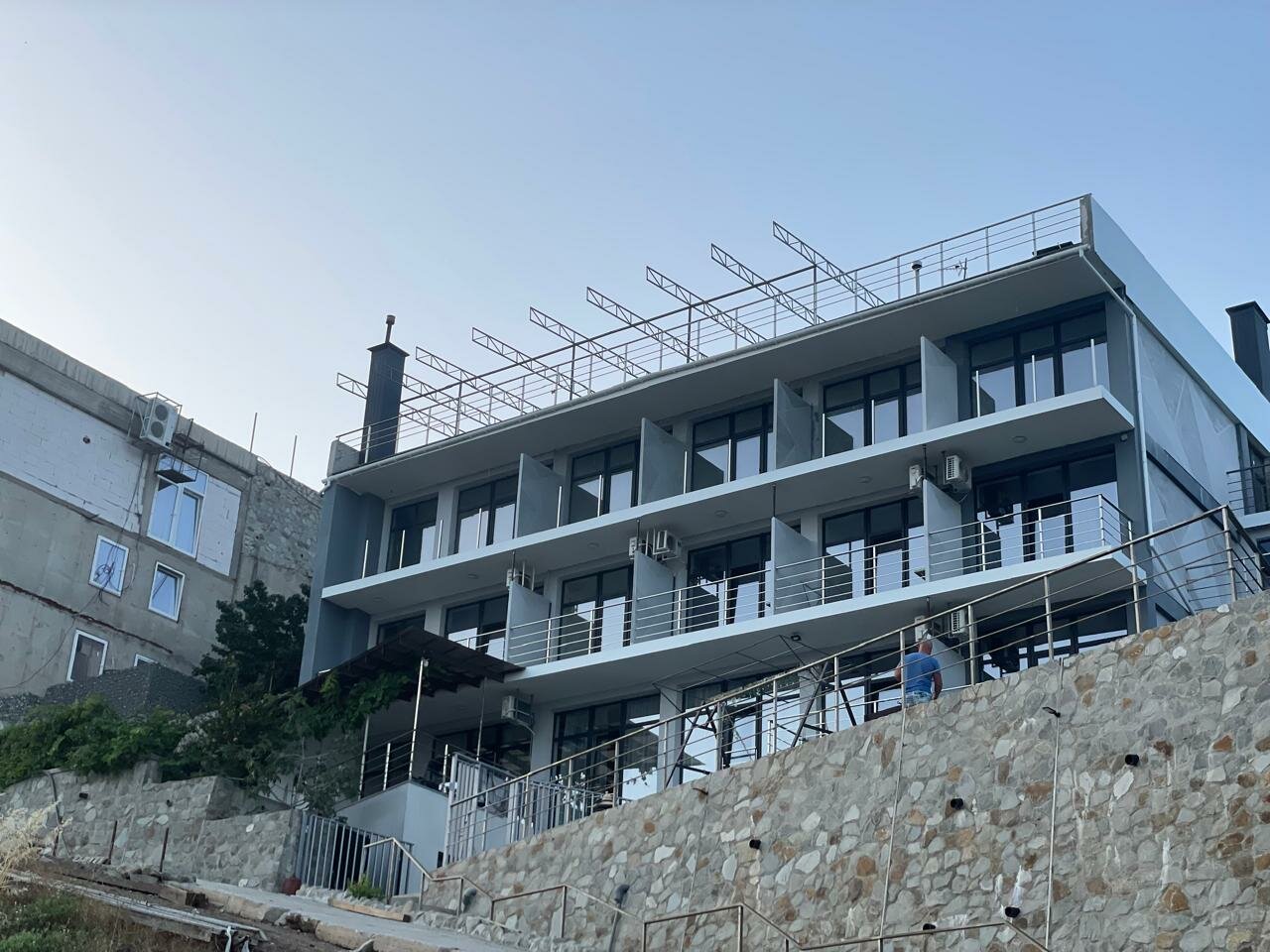 Очень крутой новый отель с видом на море! Вид со всех номеров на море! Очень красиво, новый ремонт. Хозяева супер! До пляжа 5 минут дойти с горочки, обратно минут 12 в горочку. Море чистое, людей мало. Очень уединённый отдых получился. Друзья! Я Вам очень рекомендую посетить этот отель именно с семьёй!