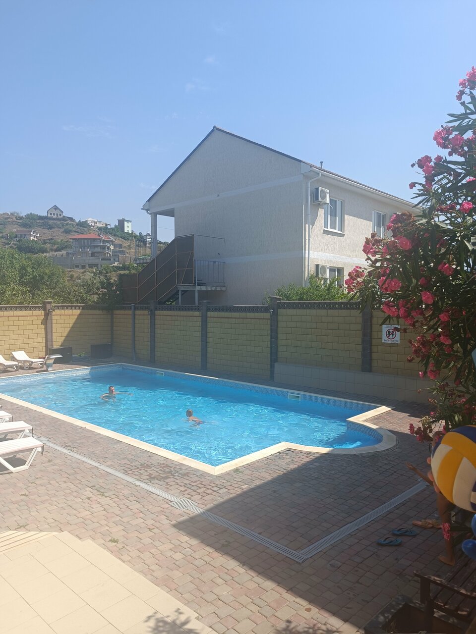 Хороший гостевой дом, с отличной территорией,чистым бассейном. Завтраки разнообразные,порции большие. До моря 10 минут,пляж наличный,море прозрачное,не где такой чистой воды не видела. Из минусов мало кафе и столовых. Столовая Лето очень понравилась,меню большое,кормят вкусно,по домашнему,но в обед большие очереди,т.к нет конкурентов. Вообщем советую .