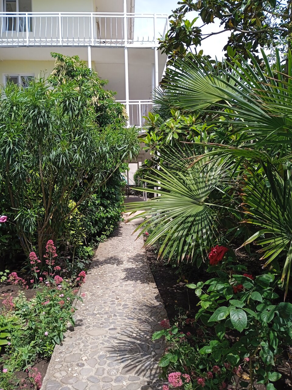Всем добрый день.Каждый раз хотим вернуться сюда снова и снова,прекрасное место для отдыха семьёй,как местные жители говорят’море в огороде’. Живёшь на линии пляжа,спишь и слышышь щум моря.Номера комфорные,чистые,просторные,спасибо горничной Яне за чистоту.Во дворе много зелени: розы,пальмы,магнолия,отдельное спасибо Славе за экзотические деревья бананы.В беседке можно урыться от солнца и на уютных диванчиках посидеть попить кофе,соки,покушать мороженое ,заказать покушать(есть повар),Вас обслужит отзывчивая и веселая Инна Сергеевна.Отдельная благодарность администратору Светлане, каждый год улучшается сервис гостиницы,чувствуется доброе отношение персонала и позитивная атмосфера.На пляже простор и чистота из номера можно выйти в купальнике и не надо занимать место с утра.Рекомендую всем,кто хочет зарядиться позитивом на отдыхе,расслабиться и получить заряд энергии,приезжайте здесь всем рады.