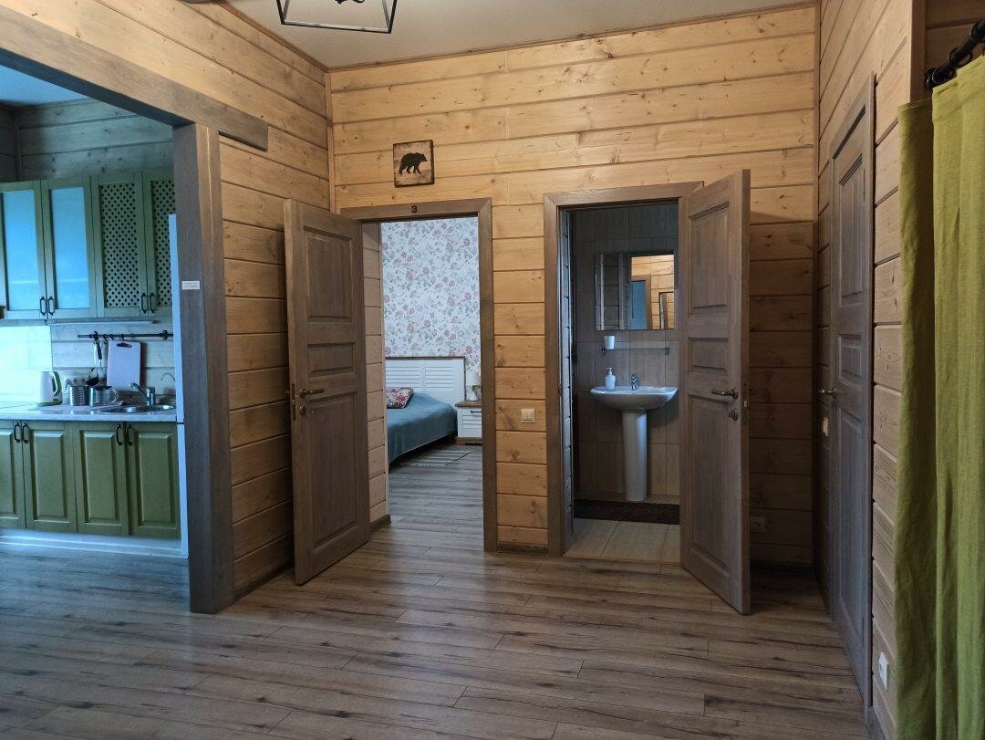 Домики шикарные. 3 жилых комнаты, наша была расчитана на 4 человека. Кухня, санузел общие. Всё, что нужно для проживания имеется. За домом имеется беседка. Всё чисто, заселял нас молодой человек (я так поняла сотрудник), всё объяснил, показал, подсказал, где что находится в самом селе. В общем остались довольные. Если вы не заморачиваетесь о том, что через стенку проживают чужие люди, то это место для вас.