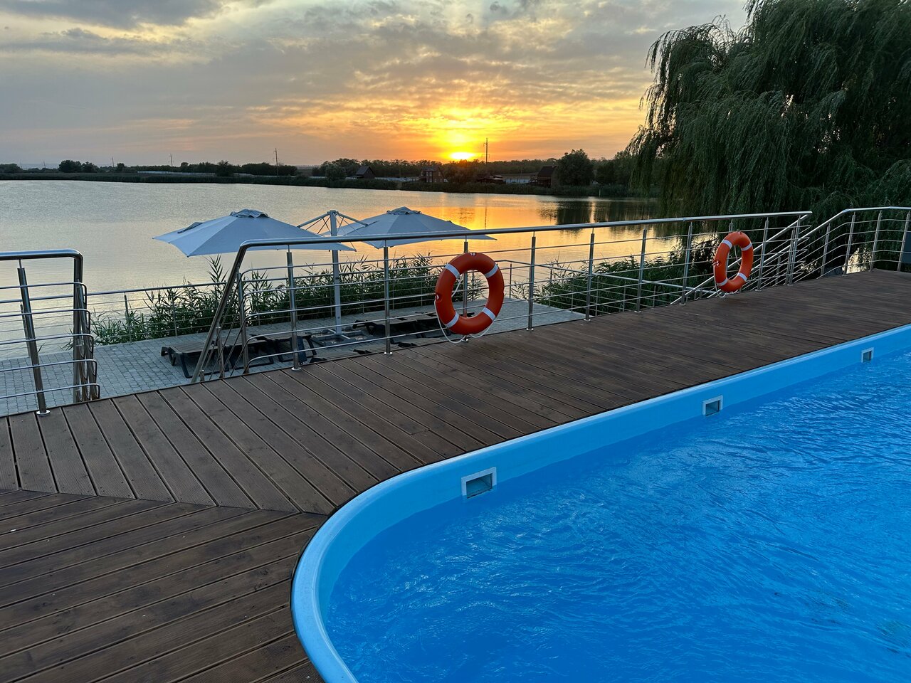 Отмечали там событие в банкетном зале. Большой пруд, рыбаки с удочками и рыба ловится крупная. Деревянные домики с бассейном и деревянным пирсом. Отдохнуть с семьёй или компанией будет классно!