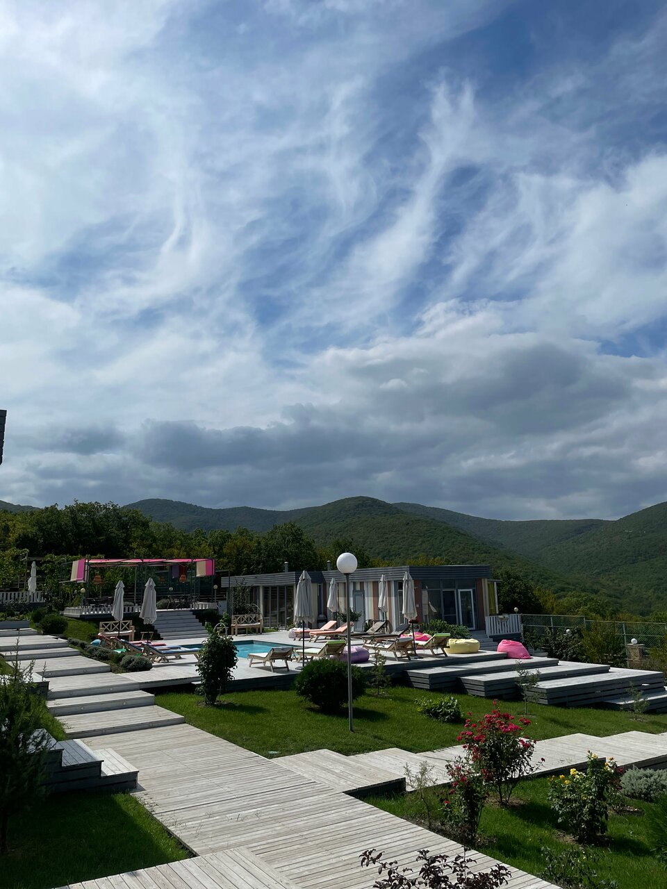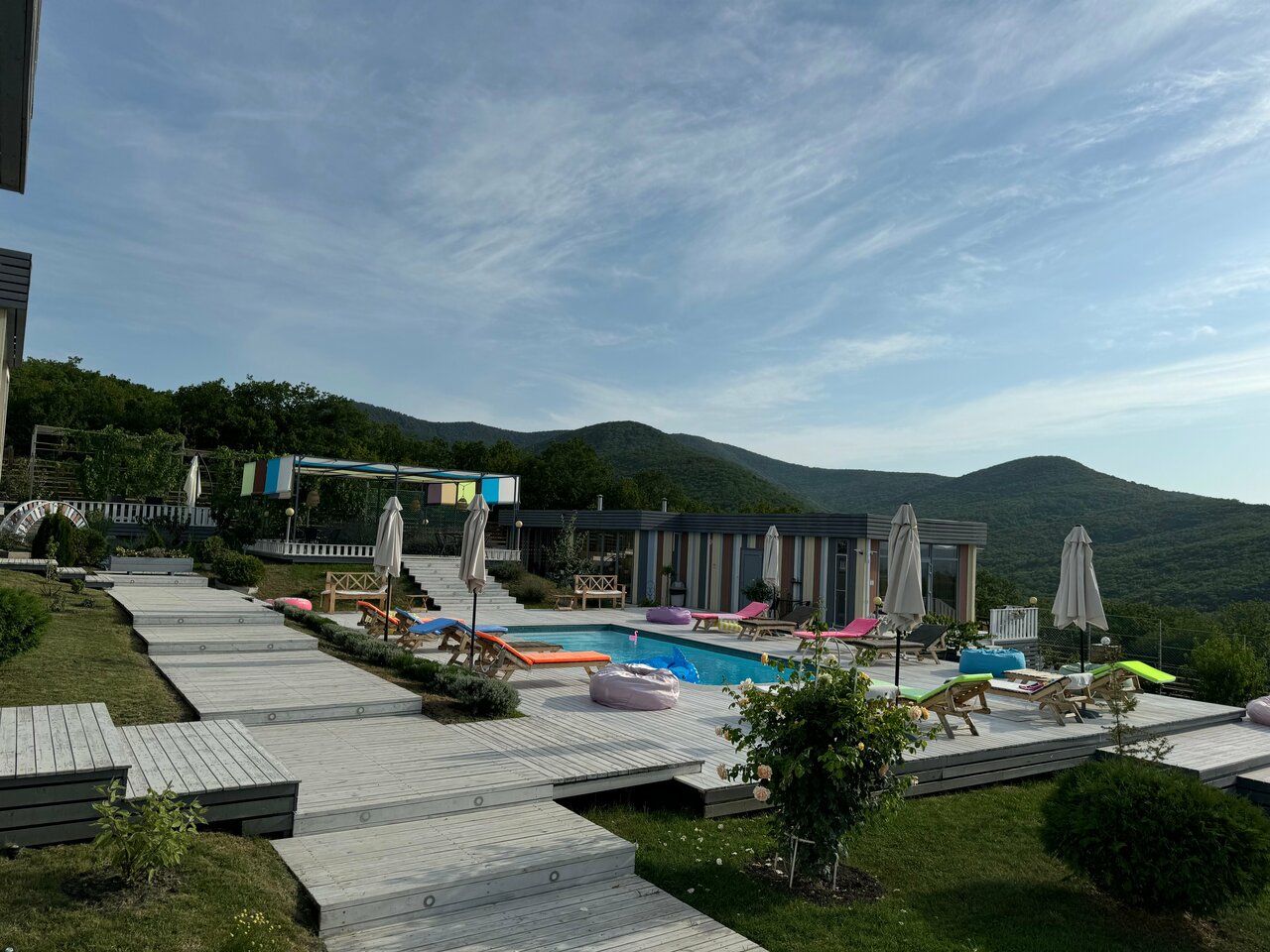 Великолепное место для отдыха! Очень красивая территория, просто сказка! Сразу видно, что все сделано с любовью и заботой об отдыхающих. Домики комфортабельные, есть все необходимое, все чисто, аккуратно, есть кондиционеры, так что было очень комфортно. На территории есть бассейн с кристально чистой водой, шезлонги, чтобы удобно было зарарать, зонтики от солнца. Очень уютная лавандовая беседка-мы там сидели вечерами и наслаждались красивейшими закатами! Вид, который открывается на горы просто завораживает. Огромный плюс, что место находится вдали от шума. Также есть мангальная зона со вмем необходимым для приготовления вкусного шашлыка. Отдельно хотелось бы отметить хозяйку Елену-очень редко можно встретить настолько доброго, открытого, чуткого и внимательного человека. Она нам сразу все рассказала, показала что и как. И ещё большое спасибо повару, которая готовила для нас вкуснейшие завтраки и ужины. Всё было по-домашнему вкусно. Однозначно, по возможности приедем снова!