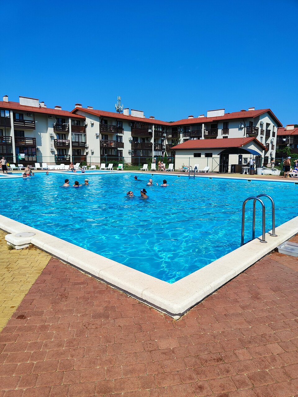 Здравствуйте, я уже всё сказала и поблагодарила менеджера! Но повторюсь!!! Отдохнули на все 100%. Всё понравилось, квартира, территория, а от бассейна мы просто в восторге!!! Сначала переживали что будет шумно спать, т. к окна смотрят на парк развлечений, но мои переживания развеялись в первую же ночь! Тишина и спокойствие, окна шума непроницаемые!!! Магазин в шаговой доступности, водомат приятно удивил, что он есть в посёлке! Одним словом, нам очень всё понравилось! Уже ждём следующего лета чтобы приехать к Вам!.
