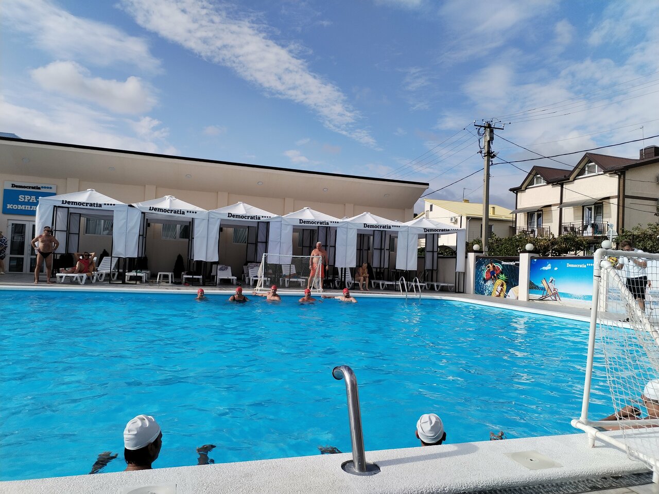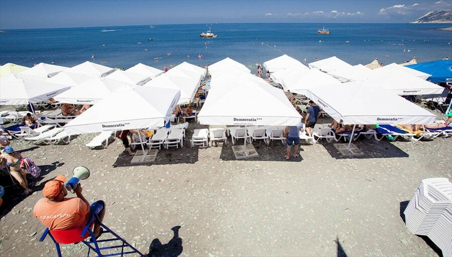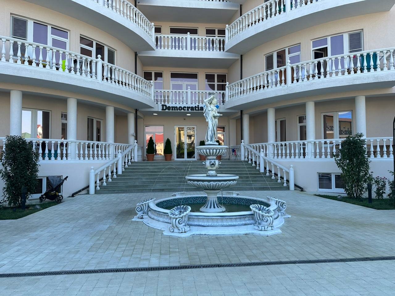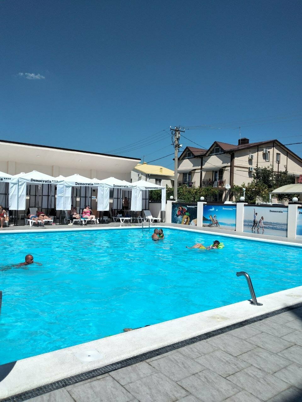 ‘Приехали в »Демократию» в августе, остались очень довольны. У отеля большая территория, много зелени. Номера светлые и уютные, уборка ежедневная. Пляж хоть и далеко, но автобус ездит часто. Питание просто огонь, анимация для детей на высоте. Советую!’