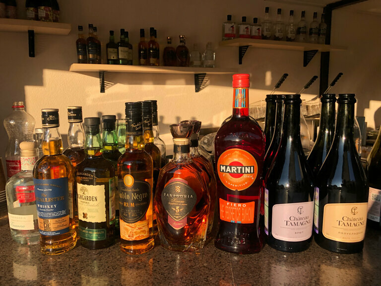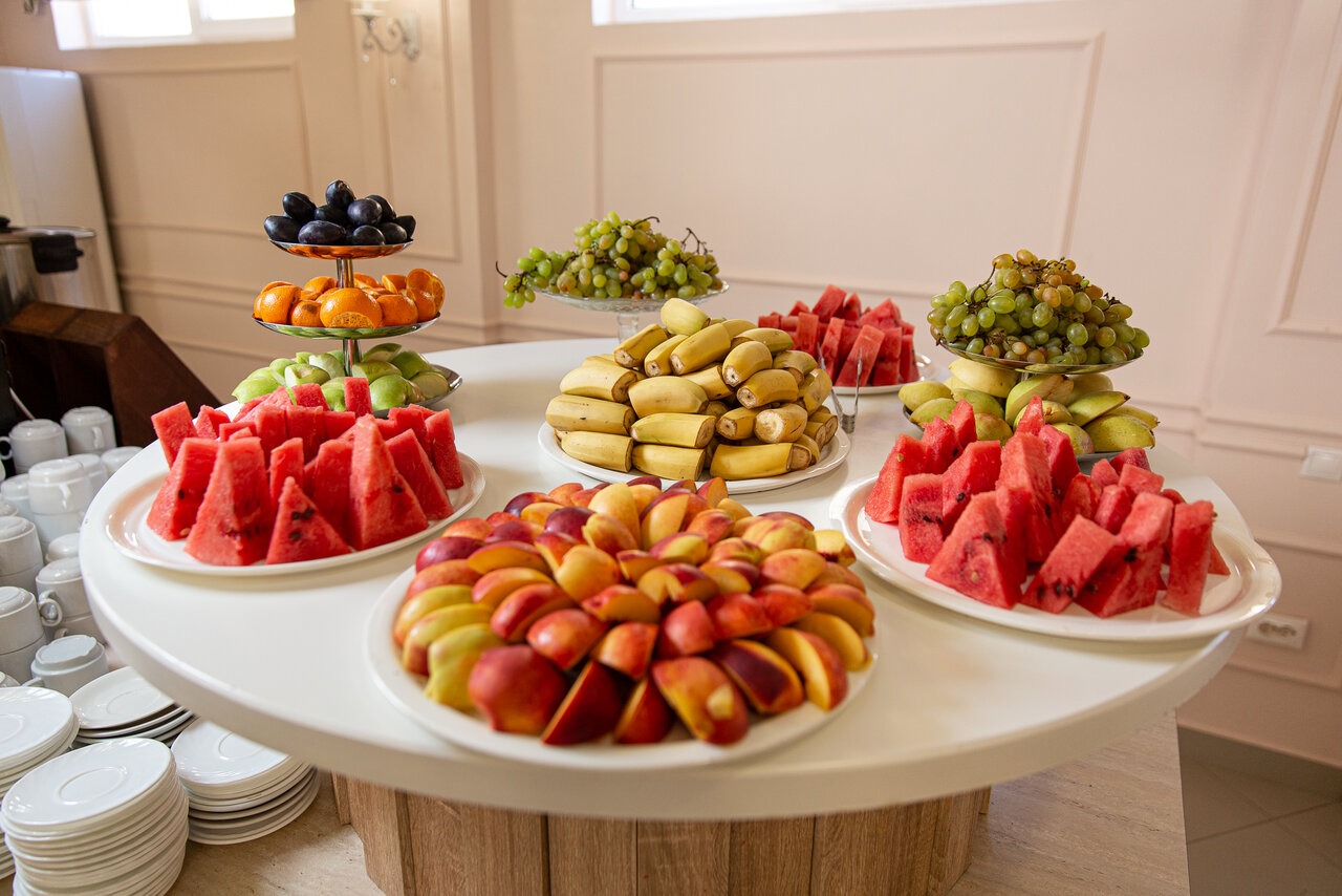 - Разнообразие фруктов и элитный алкоголь.