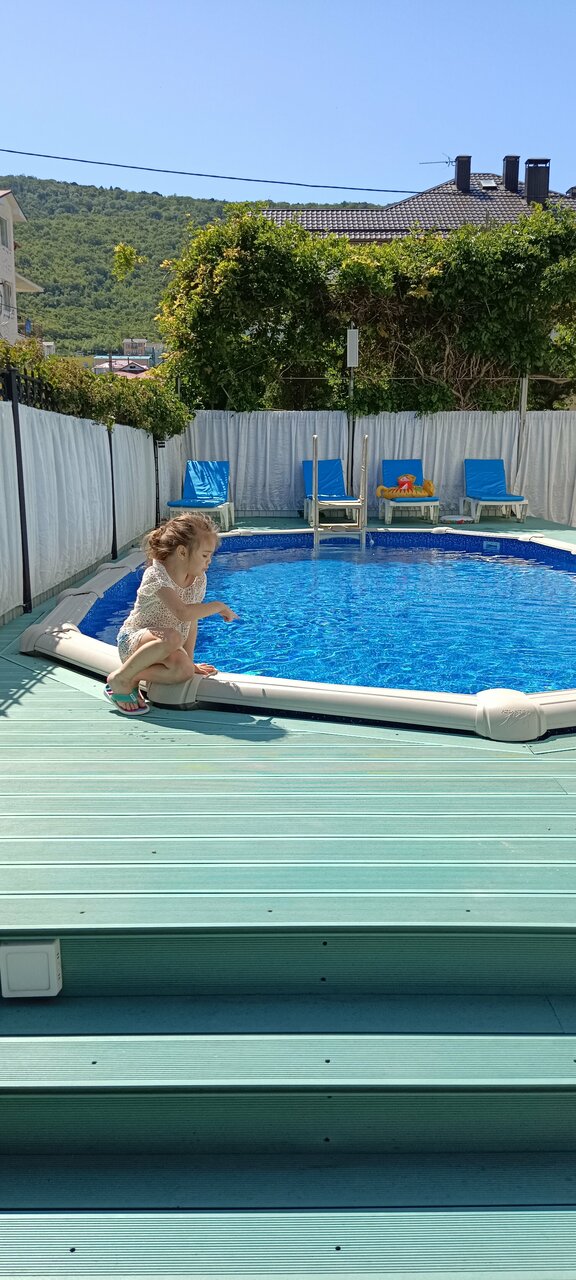 Замечательный гостевой дом! Комфортные чистые номера, бассейн, кухня на улице и детский уголок, что очень удобно, когда готовишь. Вечерами даже кинотеатр под открытым небом. Очень понравилось! Спасибо огромное Юлии и Владимиру!