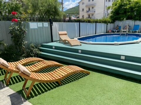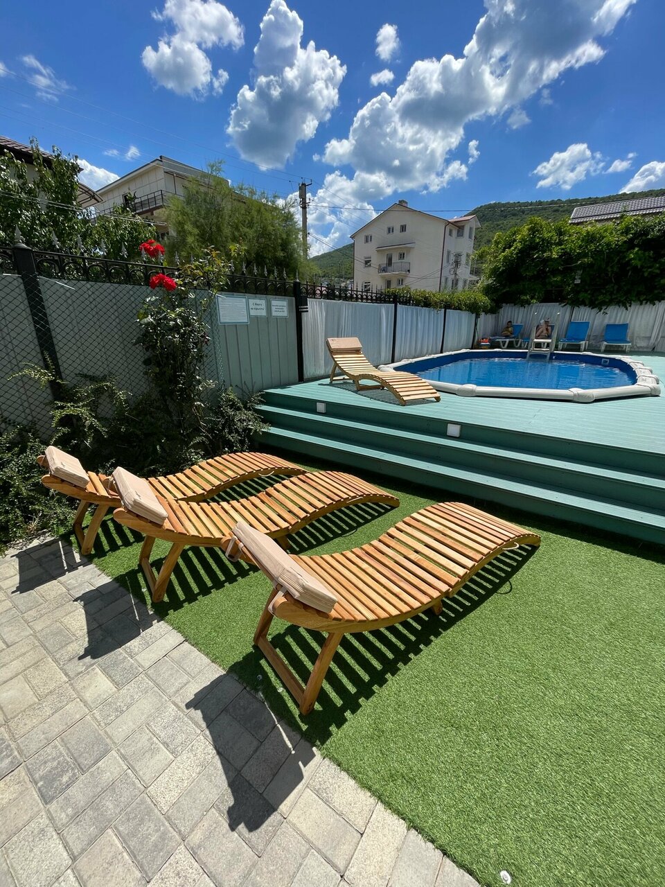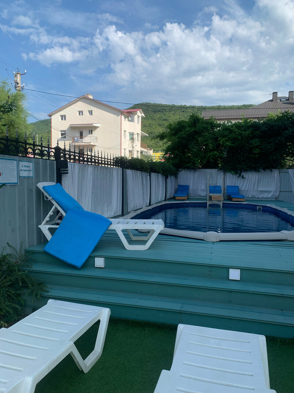 Это один из лучших отелей на черноморском побережье. Хозяева просто молодцы, так держать!!! Номера чистые, летняя кухня это просто подарок судьбы, если вам не хватает позитивного общения и разговоров по душам лучшего места не найти. Благодаря тому, что отель семейный, практически все постояльцы с детьми, для которых, кстати, есть все что нужно, а именнно бассейн ( хозяин каждый день делает пробы воды, видел неоднократно своими глазами), по вечерам детям показывают мультфильмы. Есть батут, игоровая площадка для детей. В шаговой доступности, столовая 2 кафе, магазин. До моря минут 15 пешком, но в отличии от всего остального поселка не нужно идти в гору. По пути на пляж, обязательно попробуйте шашлыки в кафе, которое находится на парковке ( прямо возле перекрестка), особенно рекомендую крылья и ребрышки. Так же очень понравилось кафе старый хутор рядом с одноименным гостиничным комплексом, отличная кухня, а персонал просто выше всяких похвал.