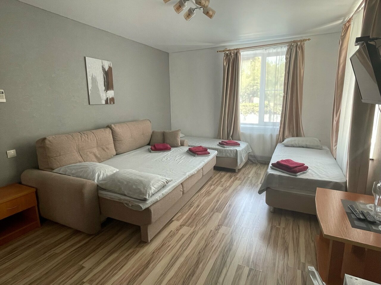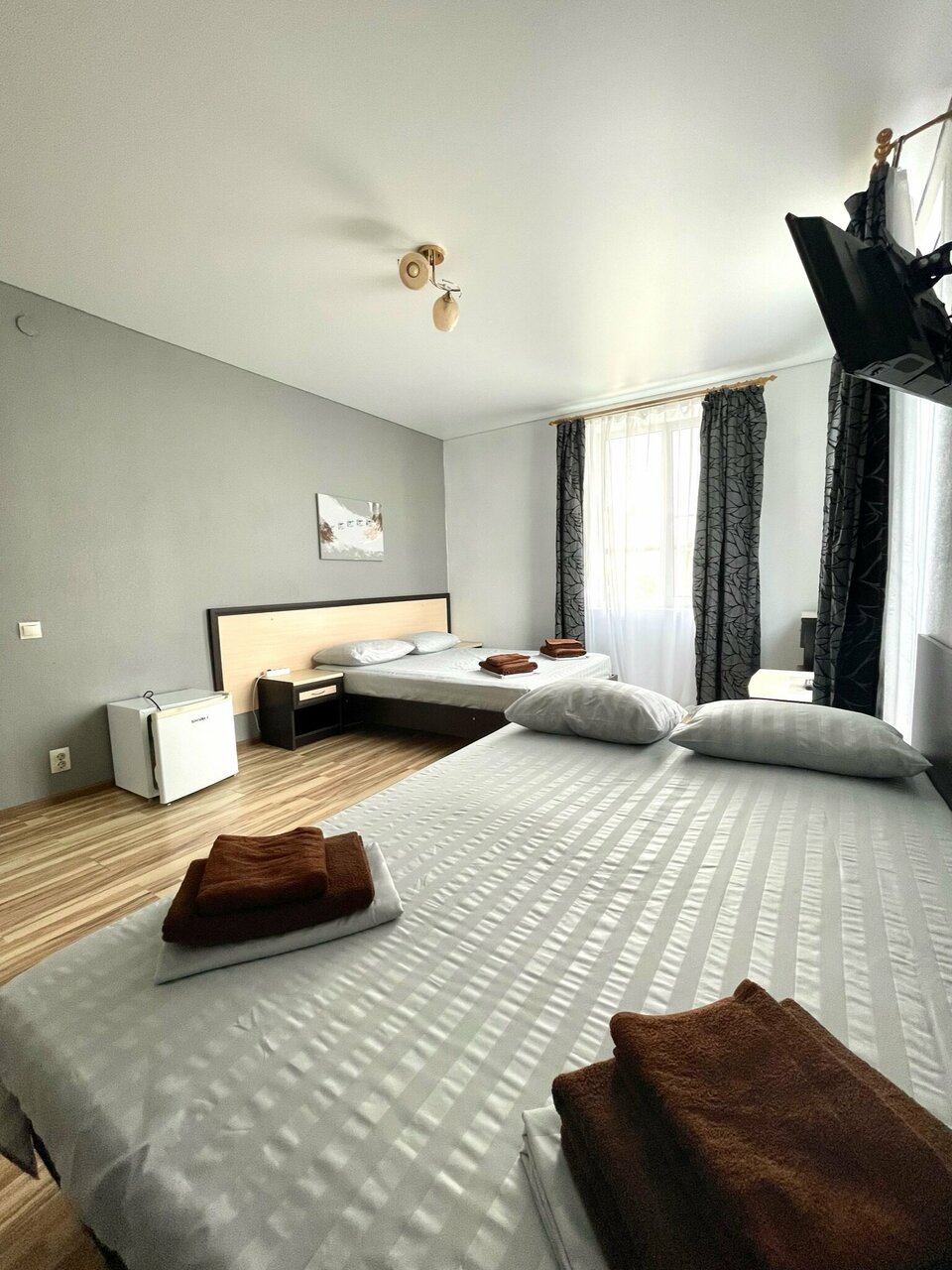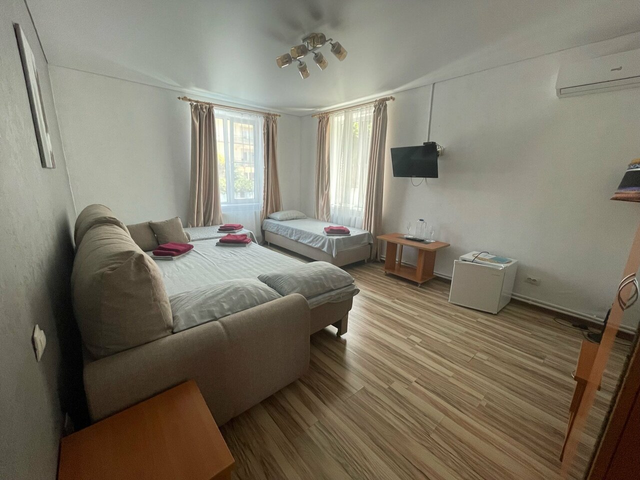 Классический трехместный номер - это номер, в котором прекрасно могут разместиться до трех гостей. Каждый номер нашего гостевого дома оснащен: Wi-Fi ТВ с плоским экраном Кондиционером Холодильником Собственной ванной комнатой.