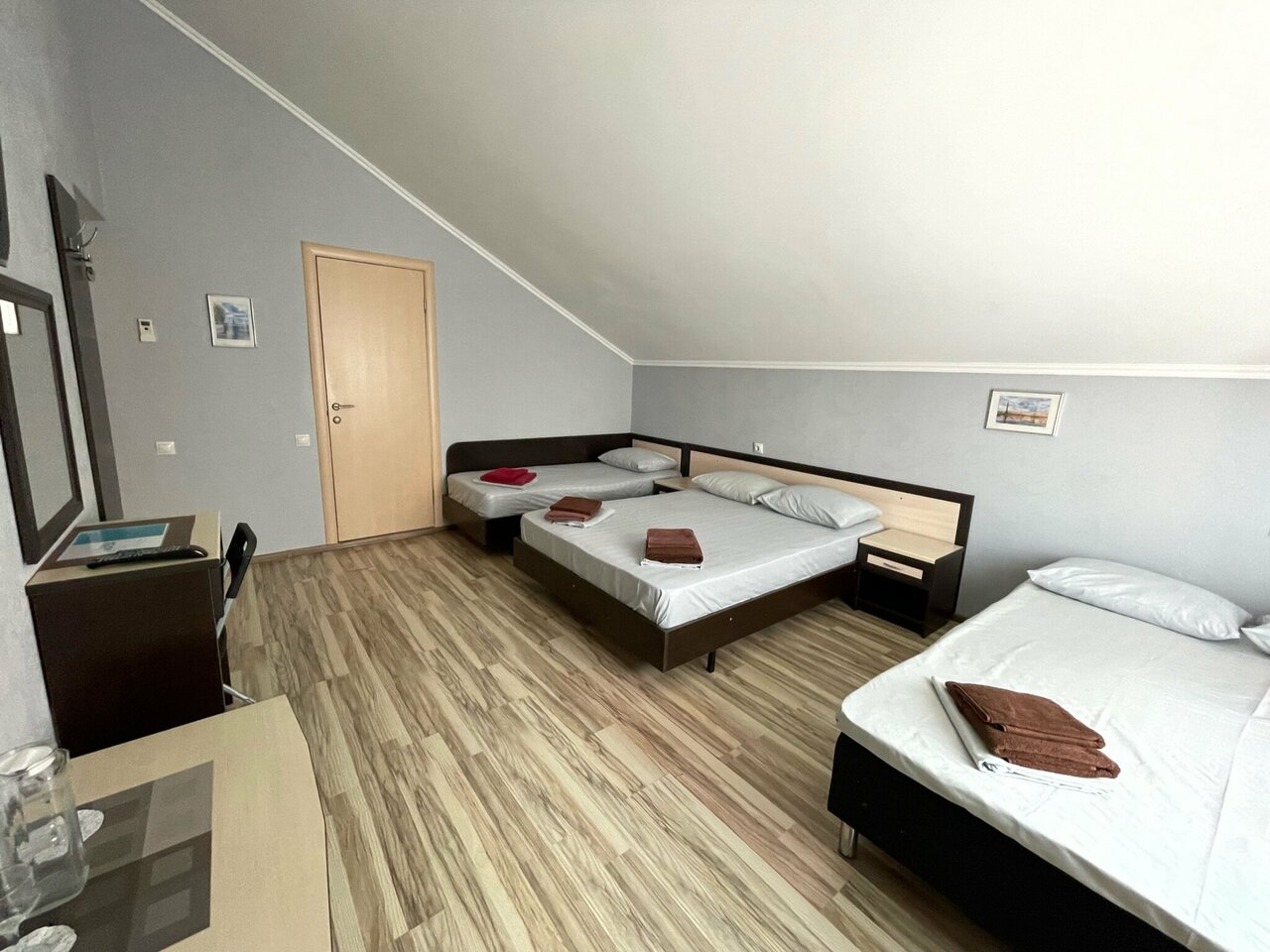 Семейный номер - это отличный выбор для семей, а также активных путешественников. Это вариант подходит для размещения 5-х человек. Каждый номер нашего гостевого дома оснащен: Wi-Fi ТВ Кондиционером Холодильником Санузлом