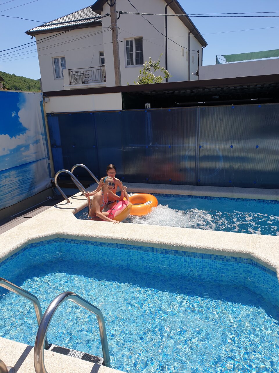 Были впервые, по совету друзей.. остались очень довольны! Номера чистые, приятная обстановка, уборка ежедневная.. Бассейн выручал во время шторма! До моря и инфраструктуры минут 15 ходьбы. Мангальная зона способствовала общению с друзьями и дополнительному релаксу! Отдельное спасибо хозяину Сергею Петровичу за гостеприимство!! Рекомендуем!