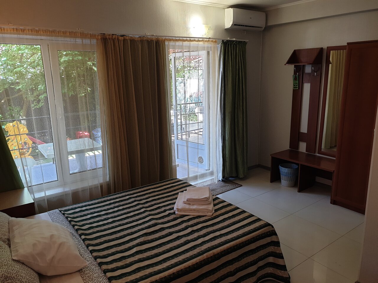 Отдыхали в июле 23г. Номер чистый, уборка каждый день, смена полотенец и белья, уютная территория, на кухне тоже чисто, много посуды, вода в кулере всегда, бассейн тоже постоянно чистится. У каждого номера на балконе столики и стулья, чтоб отдохнуть. До моря мин 20. Честно, придраться не к чему. Спасибо хозяевам за наш хороший отдых.