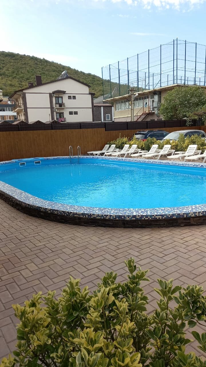 Очень хорошее место, есть парковка,, номера чистые, ремонт свежий, вайфай, бассейн , телевизор, сплит, очень приятное место где можно посидеть под навесом, чистая кухня со всей посудой, чайники плита и все что нужно. Отдельно хочу сказать про камин на две компании берите с собой дрова шашлык будет лучший, новые решетки, шампура и все это с видом на горы и бассейн с подсветкой. Пятнадцать минут до моря, вообщем хорошо провели выходные, всем рекомендую.