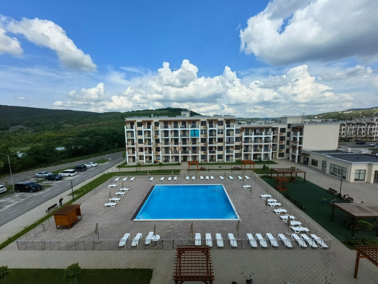 Второй год проживаем в данном комплексе — снимаем на длительный срок квартиру для бабушек и детей. 5 бассейнов, 3 площадки для детей, спортивная площадка, зона для шашлыка, парковочных мест очень много. В этом году открыли Пятерочку, Озон, Детский клуб, аптеку — совсем хорошо стало, все можно купить в шаговой доступности. Только положительные впечатления.
