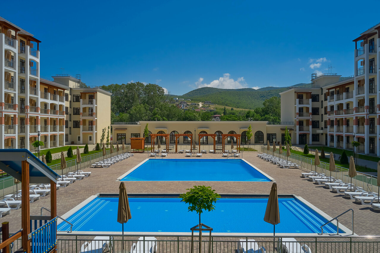Хорошее новое место в сукко для отдыха.своя территория, бассейны,тренажёрные и игровые площадки.Бесплатный трансфер до моря ,правда с недружелюбным водителем.)