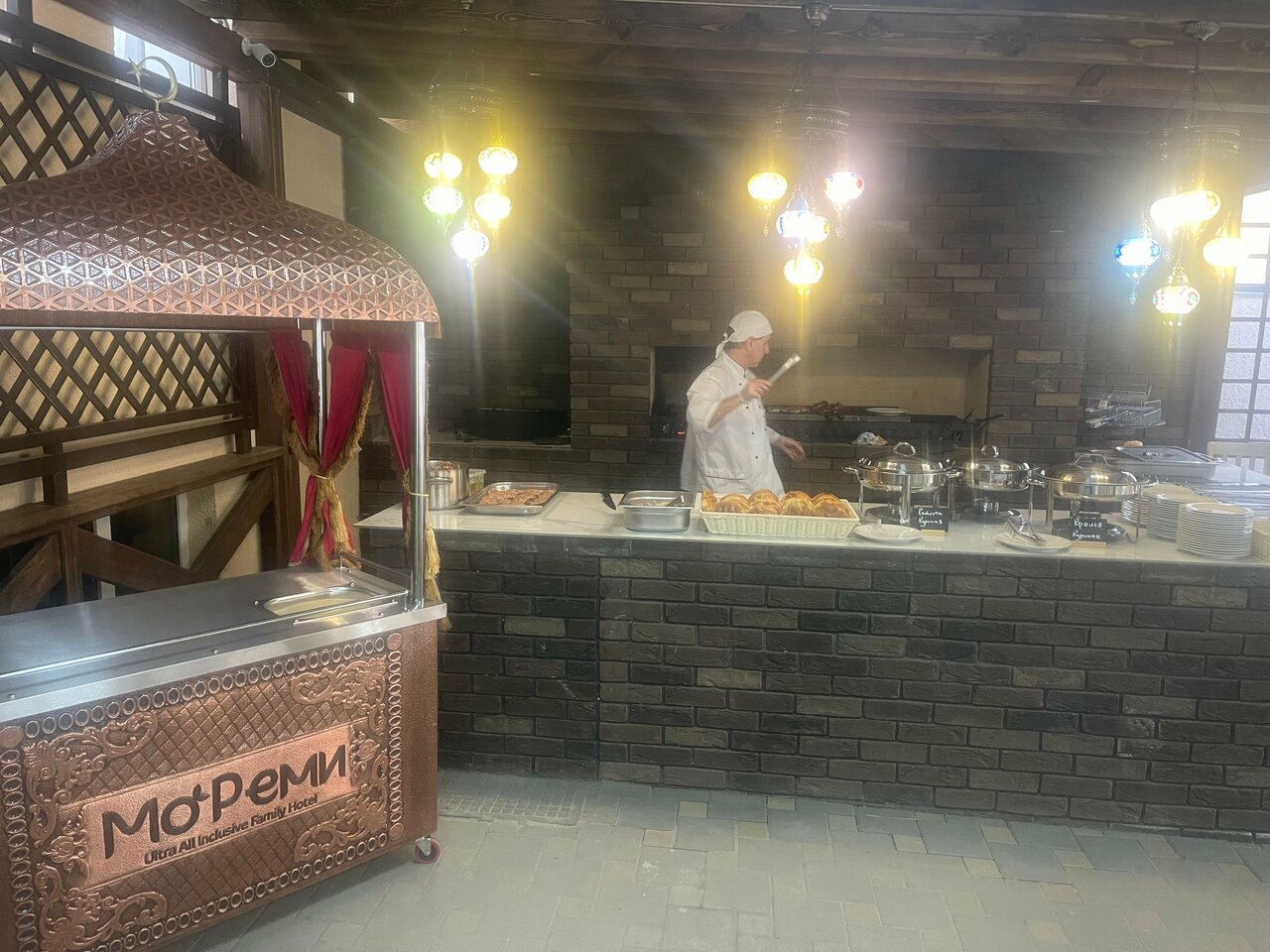 Останавливались в отеле Мореми на майские праздники, т.е. буквально сразу после открытия отеля. В целом, хочу сказать, что отель оправдал наши ожидания. Хотя отзывы читали разные когда выбирали отель. Первое, кто-то жаловался что в отеле мало бассейнов. Мы насчитали 6. Не сказать что это мало. Лежаков хватает всем. Все бассейны подогреваемые, что было очень актуально , так как в начале мая было прохладно. Второе, кормили вкусно. Каждый день в кафе Султан готовят шашлыки, купаты, утром жарят омлеты и блины, есть свежевыжитый апельсиновый сок. Единственное, чего лично мне хватило — это разнообразия по салатам. Там же в кафе проводятся тематические дни. Мы попали на день Турции и Египта. И если мы вернемся снова в Мореми, то обязательно ради того чтобы опять попробовать кофе на песке, баклаву и мороженое. На день Египта сами египтяне — аниматоры готовят их традиционную еду. Тоже стоит попробовать. Считаю, что отдых в отеле Мореми удался!
