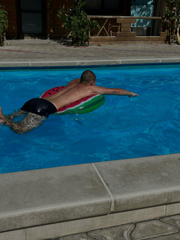 Очень всё понравилось!!! Басеин, в номере очень чисто, есть всё необходимое, домики деревянные, есть общая кухня и монгальная зона, есть столовая за отдельную плату, до моря идти минут 20 пешком, во дворе есть стоянка для машины. Хозяева очень хорошие, добрые и отзывчивые люди, всегда подскажут, что где находится. Нам с женой очень понравилось!!!