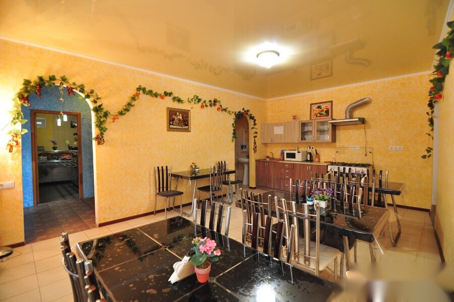 Отличное место для семейного отдыха. Номера чистые уютные с холодильником кондиционером, своя душевая и туалет. Общая кухня 24 часа. В номерах стол и стулья которые можно выносить на террасу каждого этажа. В свободном доступе утюги с гладильной доской. Нет столпотворения, гости все приличные, воспитанные, тихие. На территории свой бассейн. Много разных удобных беседок. Мангал, казан. Детская площадка. Невероятно красивая пещера с солью. Имеется баня-бочка. На заднем дворе очень тихое место с гамаками в можжевеловом лесу. Хозяин встретил нас. По дороге все рассказал, показал. Дважды в день бесплатно возит на море и обратно. Можно заказывать 3р питание. В 5 минутах ходьбы небольшой, недорогой магазин. А также рядом выпечка на заказ пиццы, самса и ТД. очень вкусные!