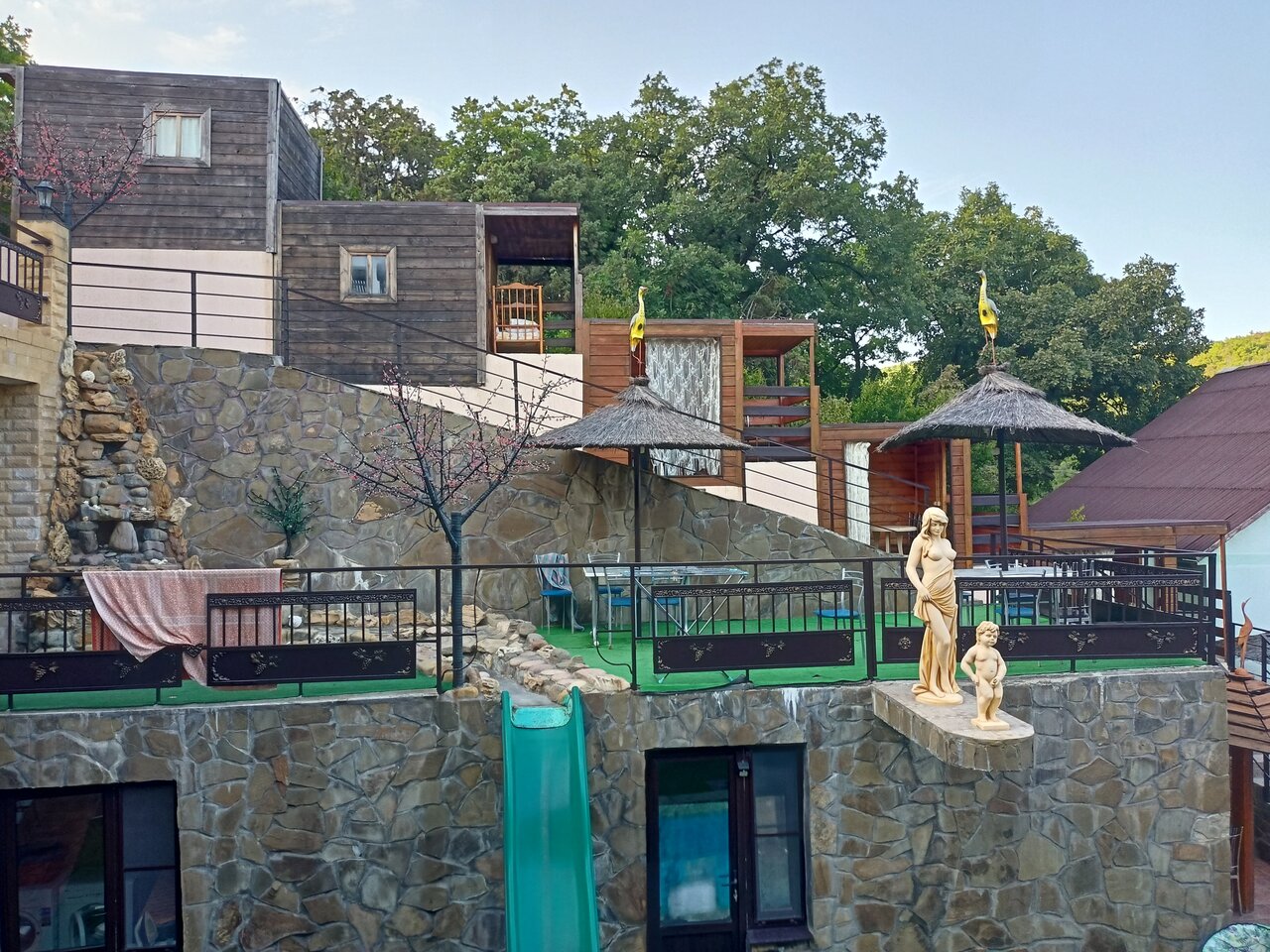 - Разнообразные беседки, мангальная зона, казан.