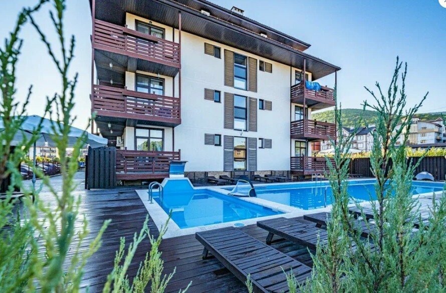Отличный коттеджный посёлок, охраняемая стоянка, несколько бассейнов, сдаются отдельные квартиры с набором всего необходимого. Находится в центре посёлка Сукко. До моря близко, рядом кафе и рестораны, игровой комплекс. Есть свой Инстаграмм, где можно увидеть квартиры и территорию. Рекомендую!!