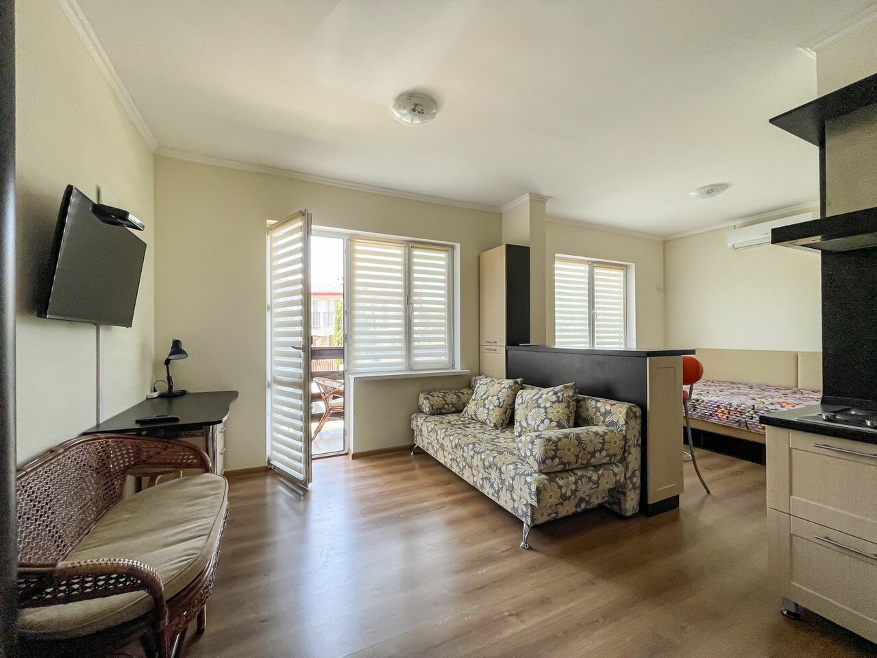 Отличное место — очень близко к морю (насколько это возможно в Сукко). Территория ЖК — закрытая, охраняемая, с детскими площадками и 2 бассейнами. В квартире все есть для комфортного проживания. Менеджер — через кого бронировали, постоянно на связи, отвечает на любые вопросы. В-общем, остались очень довольны. Спасибо! И ценник адекватный весьма, по сравнению с остальным жильем.