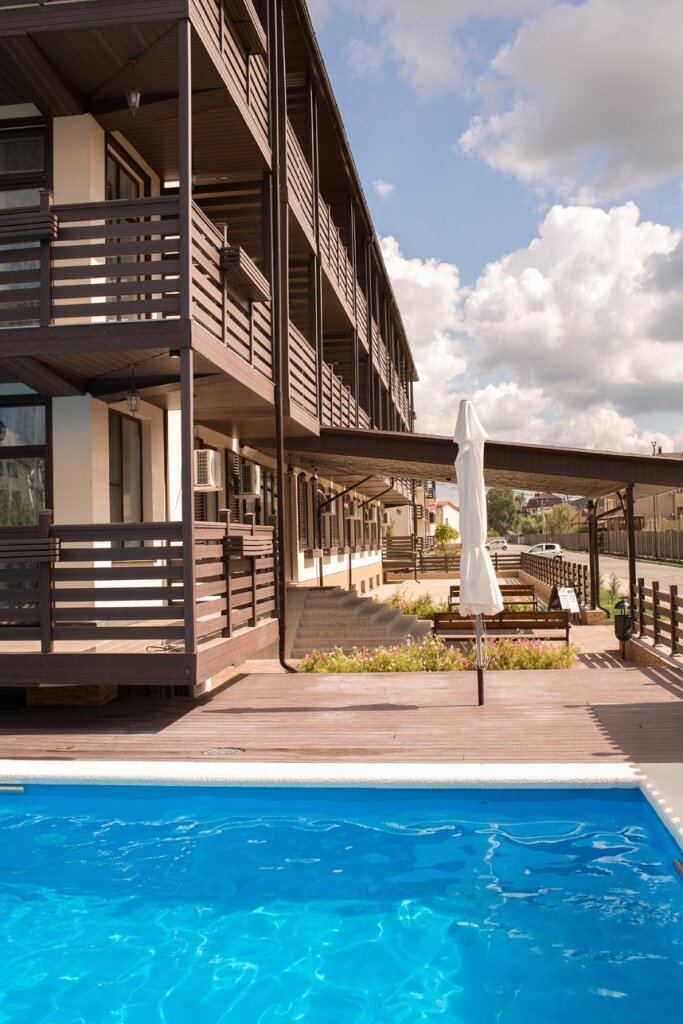 Цена качество , есть бассейн, сотрудники отзывчивые , для детей есть аниматор . У нас был включен завтрак , очень прилично готовят , в отличии от других мест где мы были . За паковку нужно договариваться заранее так как количество мест ограничено . Если собираетесь поехать в Сукко то отель хороший . Само Сукко маленькое поселение некуда сходить , мы ездили в Анапу гулять , занимает поезда 30 мин . Море в Сукко чистое , берег галька , пляж маленький .