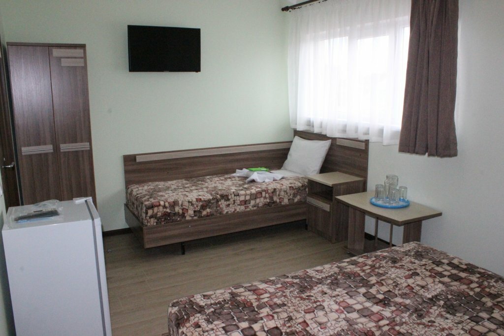 Честно говоря, забронировали этот отель от безысходности (пришлось срочно съезжать из шангри, так как жить там невозможно), первый попавшийся, в котором есть номера и по адекватной цене. И очень рады, что попался именно он! Дети в полнейшем восторге! Это не отель, а детск й сад с бассейном и трансфертом на хороший пляж (большой Утриш). Пришлось даже продлить проживание на день, уж очень сильно дети уговаривали. Есть анимация, конкурсы, дискотеки, на ресепшен можно выбрать и заказать экскурсии. Вежливый персонал, есть кухня-столовая, а в соседнем здании есть столовая с приемлемыми ценам и нормальным ассортиментом (для тех, кто как мы не хочет готовить в отпуске). Очень красивый и удобный номер! Дополнительные места — полноценные кровати, а не диван раскладной, как обычно. По запросу предоставляют кроватки для малышей (за дом.плату) и бортики к обычной кровати. В общем всем рекомендую!