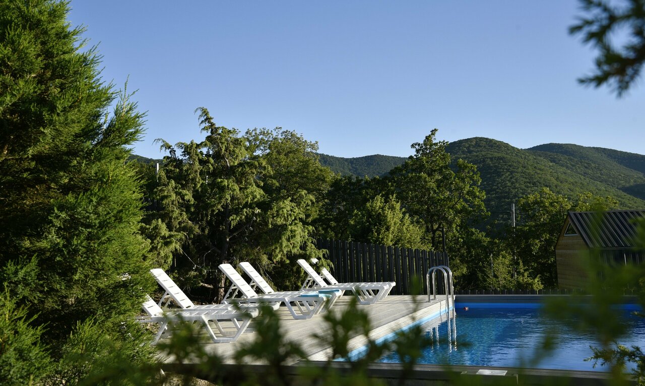 Видовой бассейн с подогревом в Отеле ТЕПЛО в Сукко. Для гостей отеля доступен теплый бассейн с фантастическим видом на холмы заповедника Большой Утриш.