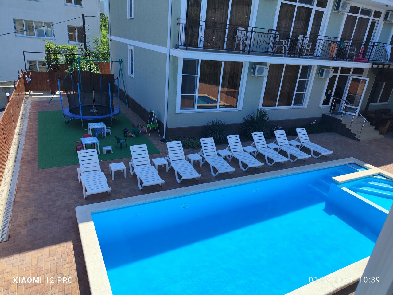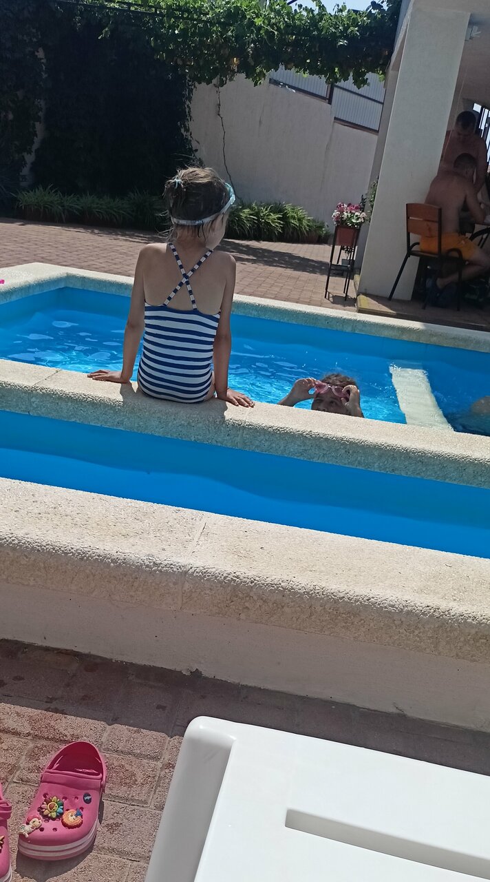 Отдыхали группой с10 по 13августа. Встретили хорошо, всё объяснили, показали. При расселении никаких фамилий, всех по имени и отчеству. В номерах чисто, есть холодильник и сплит-система, чайник , посуда. На территории отдельно кухня с полным набором посуды, готовь не хочу. Под навесом столики. Детская игровая площадка. Идеально чистый бассейн, шезлонги. В шаговой доступности сетевые магазины, столовые и кафе.