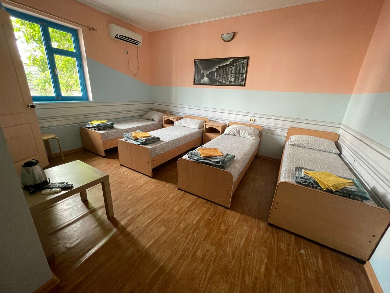 Ужасный гостевой дом!!! Хуже и придумать нельзя…Воняет канализацией. Блок кондиционеров и розетки выходят в коридор общего пользования. Пока мы были на пляже, кто-то, просто пошутил и в окно нам засунул трубку от кондиционера. При обнаружении данного факта, мы обратились к Администратору, которая спокойным голосом сказала, что это не их проблемы. Мангал один на сто номеров, да и то дырявый. Чтобы пожарить шашлык нужно постоять в очереди с часок. Воды горячей нет. Заявленная кухня в номере — это просто кухонные шкафы.Тусклый свет в комнате. И Администратору наплевать.
