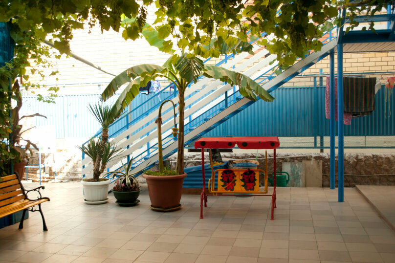 - Комфортный климат благодаря зелени (виноград, плющ).; Чистые и уютные номера с кондиционером.; Близость магазинов ("Магнит", "Пятёрочка") и кафе.; Наличие общей кухни с посудой.; Близость к морю (8–15 минут пешком).