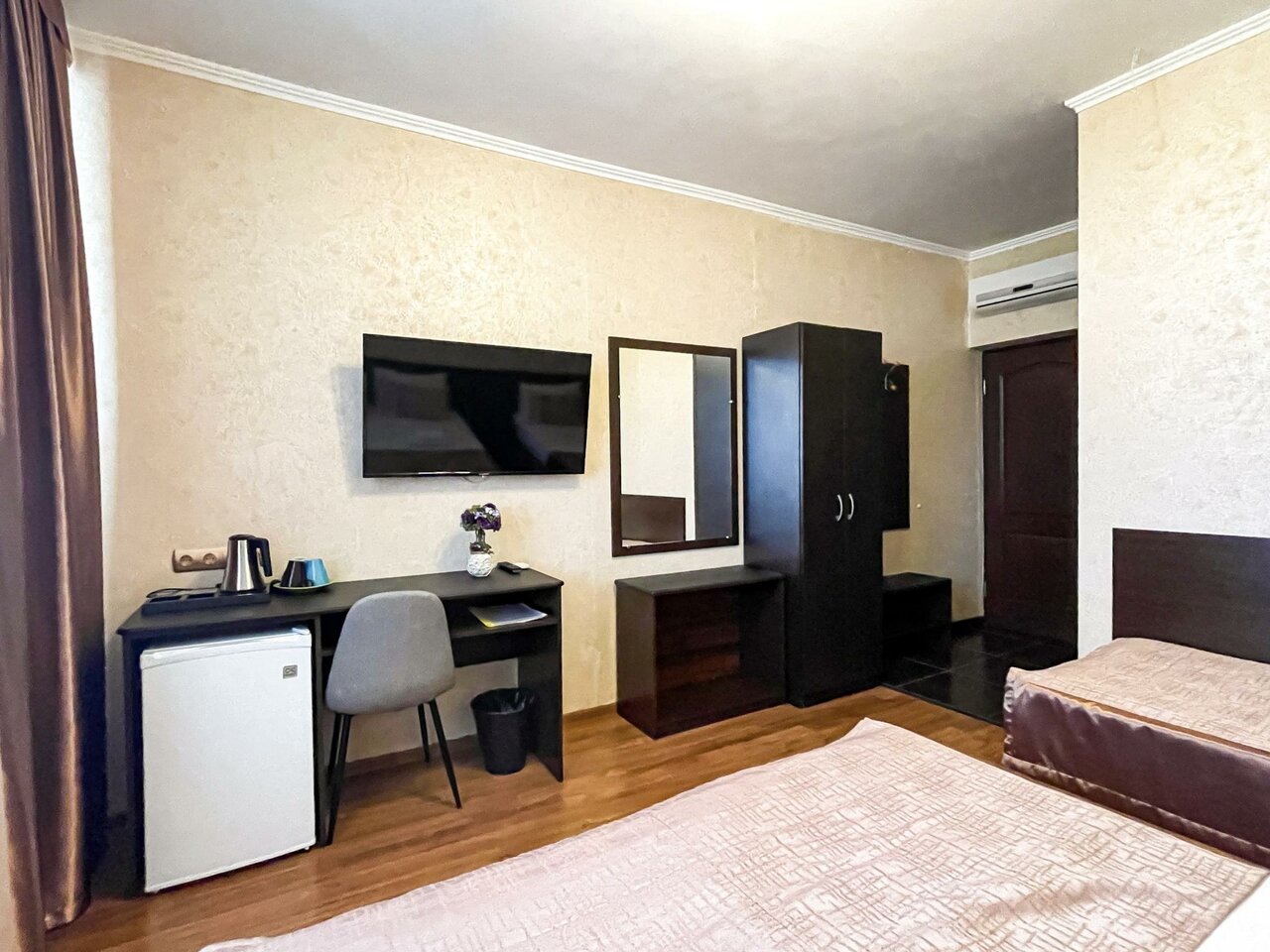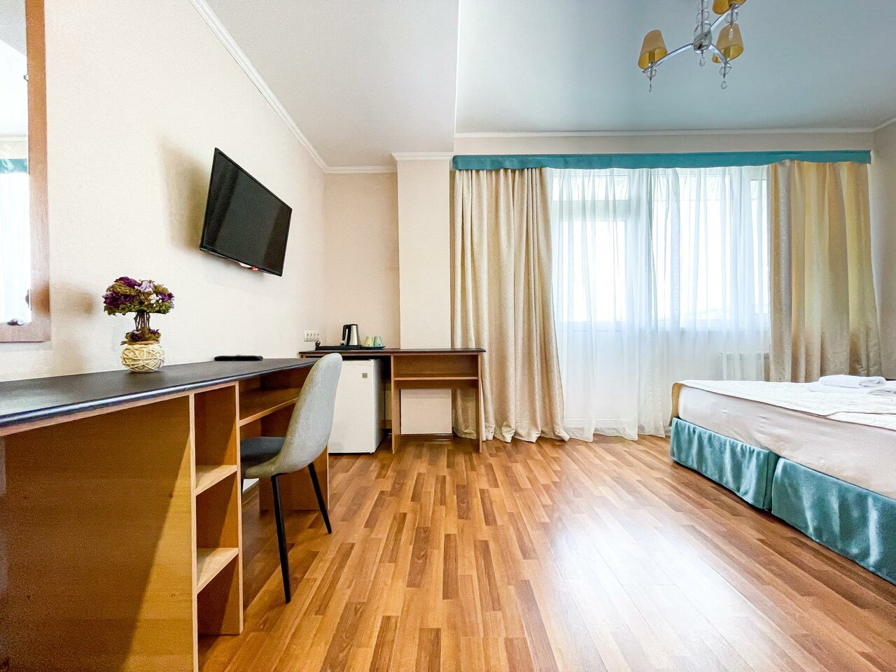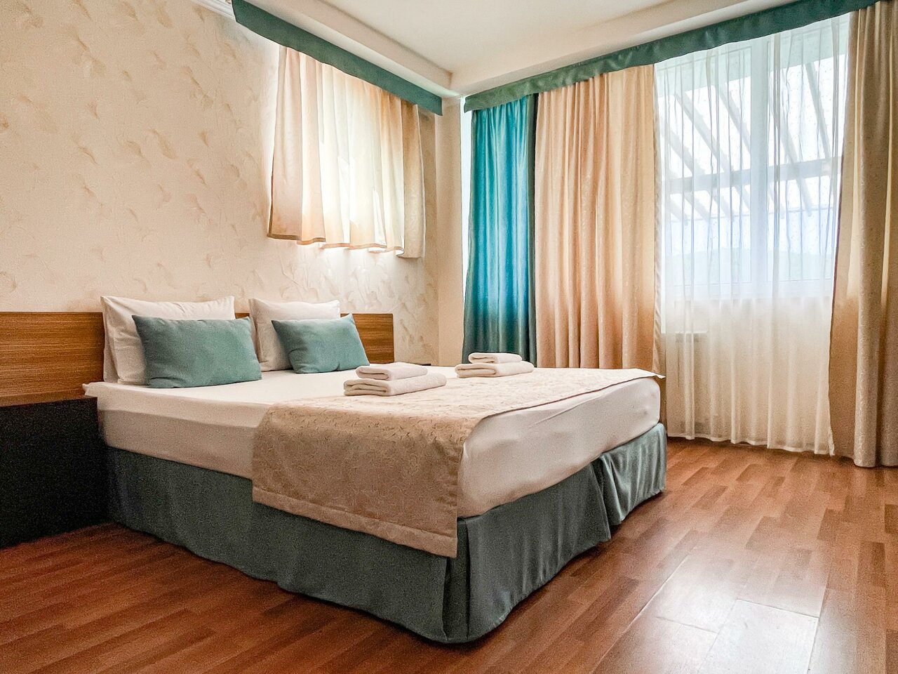 Отель достойный. Есть один большой бассейн для взрослых и один для маленьких детей. Есть столовая в отеле. Кормят хорошо и цена чуть чуть меньше(чем кафе в округе и близ лежащие, но их не так много). Понравилось есть на пятом этаже терраса. Можно вечером посидеть для души посмотреть на сопки(если не будет компаний посторонних ). Вот только постельное бы по качественнее.(матрасы и подушки.), персонал чуть по вежливее(дама на ‘ресепшене’то не найдёшь, то не очень с настроением) , лифта нет(пять этажей не для всех, хоть и полезно). В общем 4-ре звезды из за мелочей, но в сравнении с другими, очень даже достойно.
