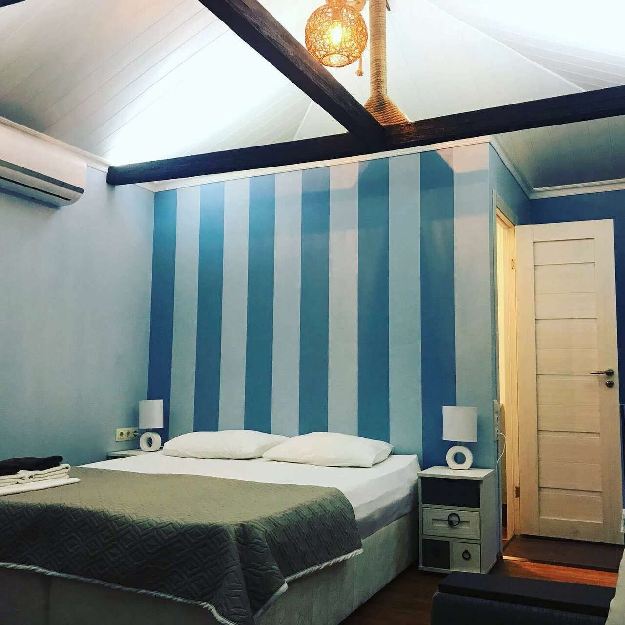 Пляж: собственный галечный, с шезлонгами и зонтами. Заезд: с 15:00, выезд до 12:00. Минимальное бронирование — 2 дня.
