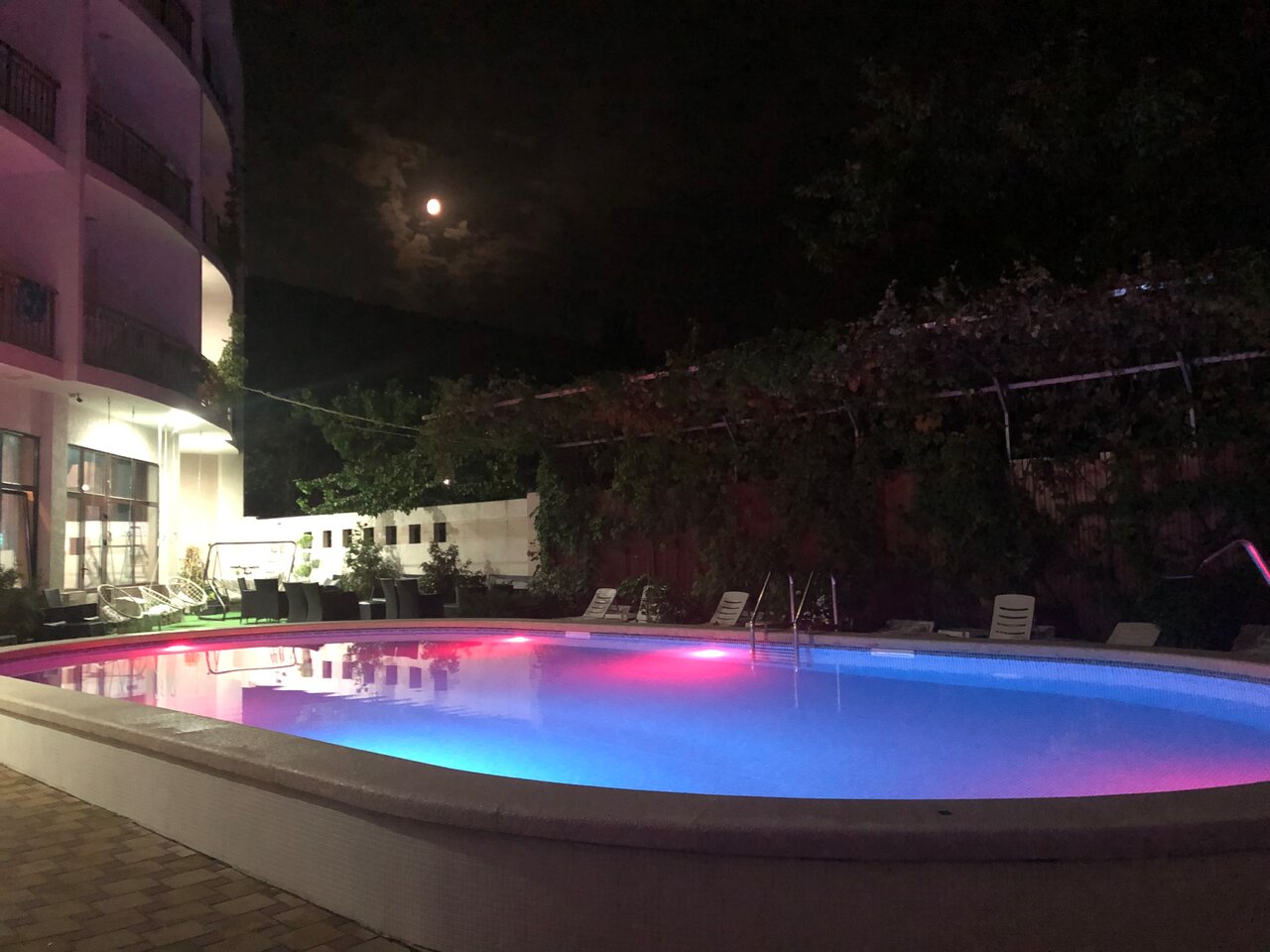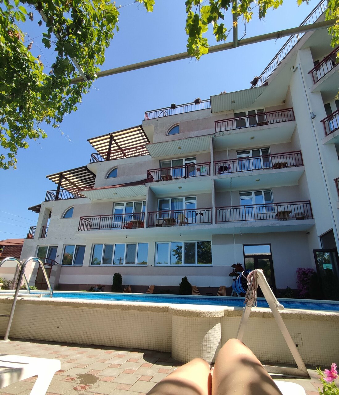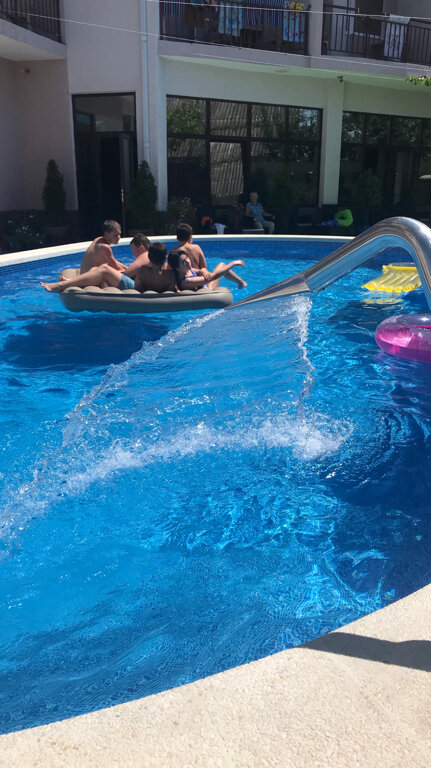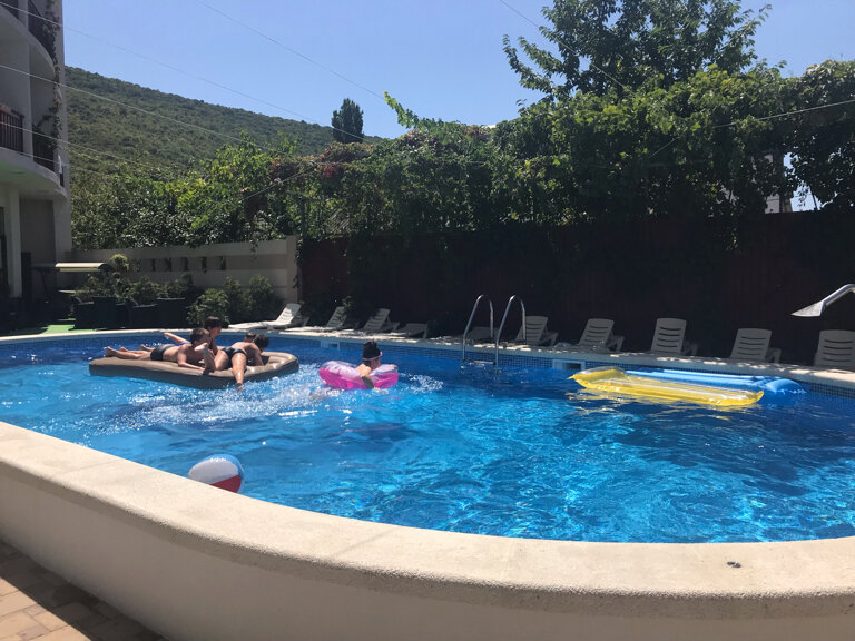 Хорошая гостиница. Три бассейна. Один каркасный на крыше. Хорошее кафе, вкусно готовят. До моря 1,5 километра. Бесплатно к морю возит по заявке микроавтобус 7мь мест. Водитель Валерий водит очень аккуратно. Ездим ежегодно на выходные в Сукко. Лучшее соотношение цена -качество.