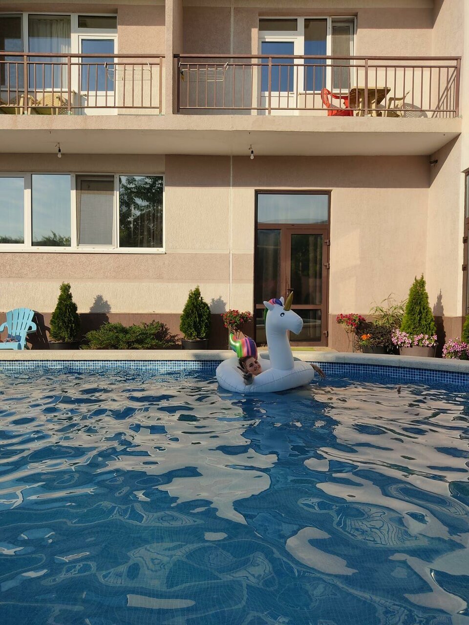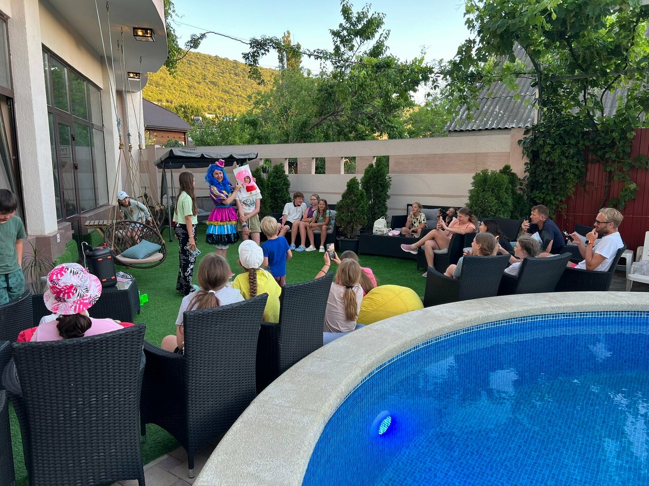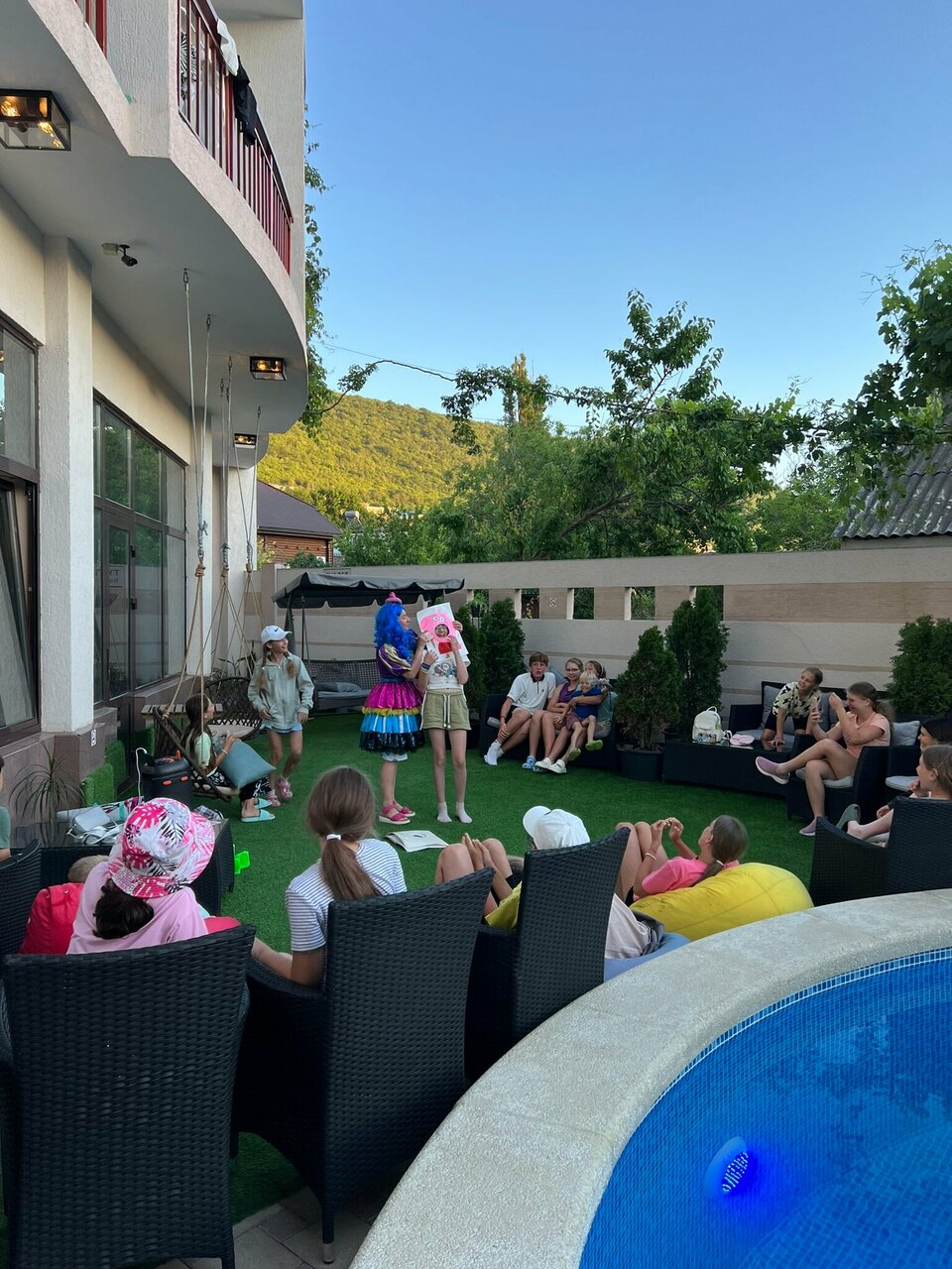 Хорошая гостиница. Три бассейна. Один каркасный на крыше. Хорошее кафе, вкусно готовят. До моря 1,5 километра. Бесплатно к морю возит по заявке микроавтобус 7мь мест. Водитель Валерий водит очень аккуратно. Ездим ежегодно на выходные в Сукко. Лучшее соотношение цена -качество.