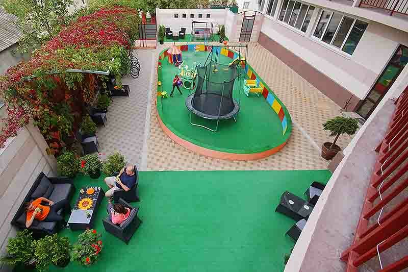 К услугам гостей: — Проживание: номера с кондиционером, Wi-Fi, телевизором, холодильником, санузлом и феном. — Питание: кафе, ресторан, столовая, варианты питания (завтрак, полупансион, полный пансион). — Инфраструктура: 3 бассейна (открытый, сезонный, подогреваемый), солярий, теннисный корт, летняя веранда, сад, терраса. — Для детей: анимация, игровая комната, детский бассейн, кроватки, стульчики, коляски бесплатно. — Дополнительно: бесплатная парковка, трансфер (платный/до пляжа), прачечная, ускоренная регистрация.