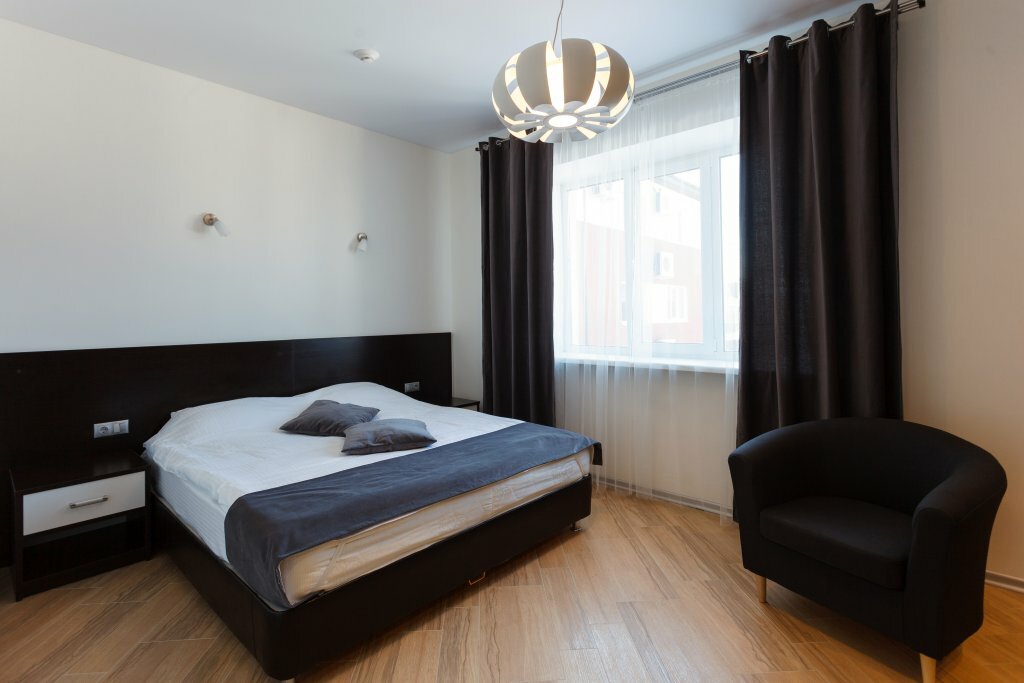 Выбор пал на данную гостиницу, т.к. она расположена на окраине г. Брянск. Но на такси можно быстро добраться до центра. Очень уютное и красиво оформленное в новом стиле данное заведение. На -1 этаже расположен ресторан, в котором утром можно позавтракать. Еда- шведский стол, где можно взять соки, вареное яйцо, бутерброд сделать аж с красной рыбой… Т.е. выбор хороший и еда вкусная. Во время еды можно посмотреть телевизор в красиво обставленной обстановке. Номер чистый, достаточно света, который отражается в зеркалах… Есть холодильник, чайник. Окна выходили на дорогу, по которой в соседние дома мог проехать транспорт. Но нам это не помешало выспаться…может ещё из-за того, что район ещё достаточно новый. Если вы на машине, то рядом с гостиницей можно её припарковать. Правда зимой, как мы поняли из висящей на здании информации, может сходить снег с крыши..поэтому машины у здания ставить не рекомендуют. Спасибо, что хорошо отдохнули здесь. Рекомендую!