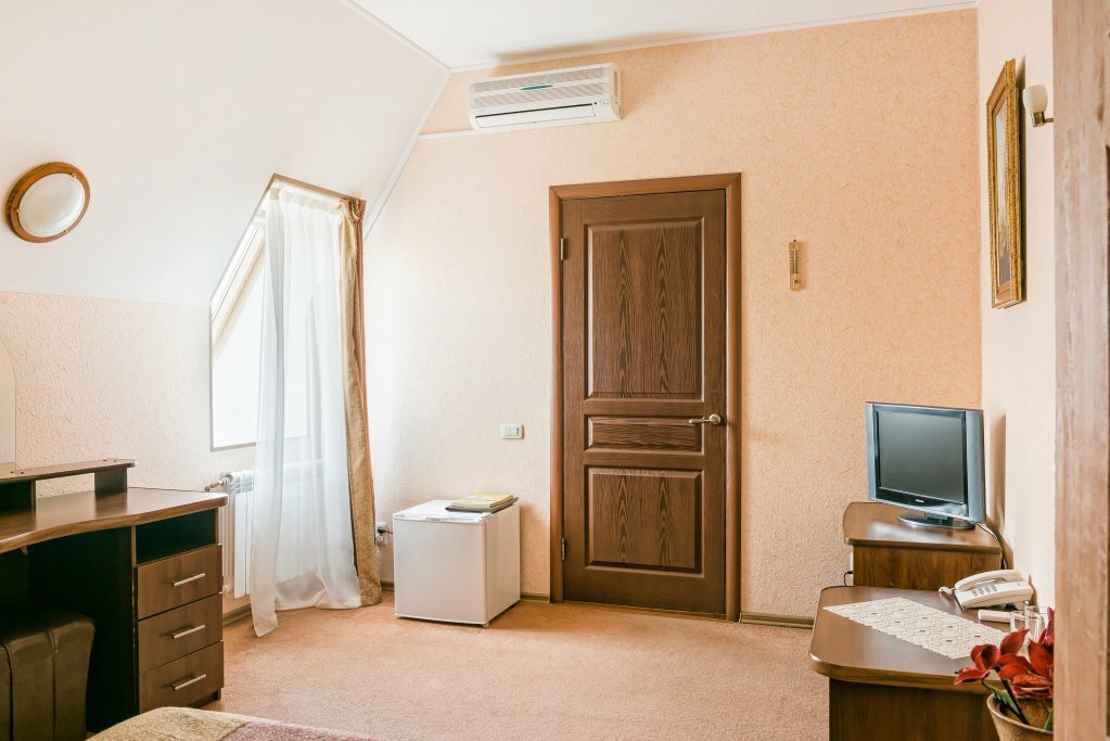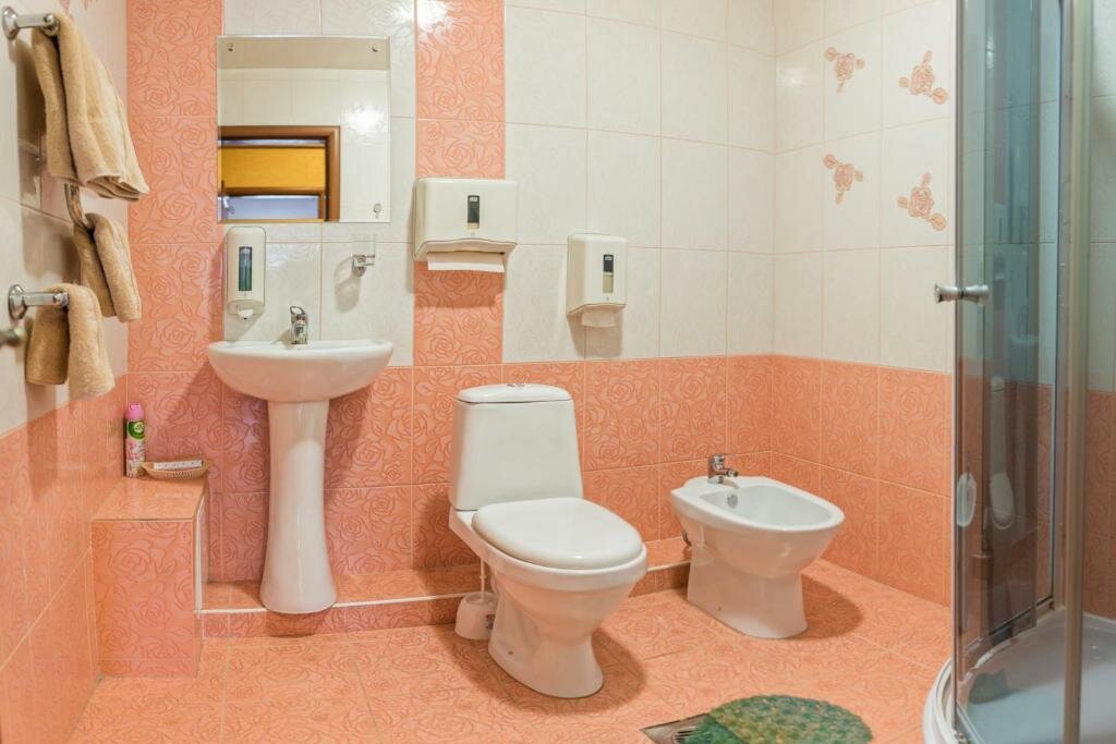 Прекрасно оформленное и уютное место. Спокойные тихие и просторные номера, с холодильником, кондиционером и tv. Окна выходят на лесной массив или монастырь. Душевая кабина, раковина, унитаз и (внимание!) биде! Всё новое. Отличный напор воды. Полотенцесушитель и батарея нагреваются. Одноразовый шампунь, гель для душа и тапочки. Бельё свежее. Можно заказать завтрак за скромные деньги. Не пожалейте час пройти вокруг монастыря и внутри — есть на что посмотреть. До ближайшей ‘пятёрочки’ 15 мин.пешком. За достаточно умеренную цену — прекрасное место!