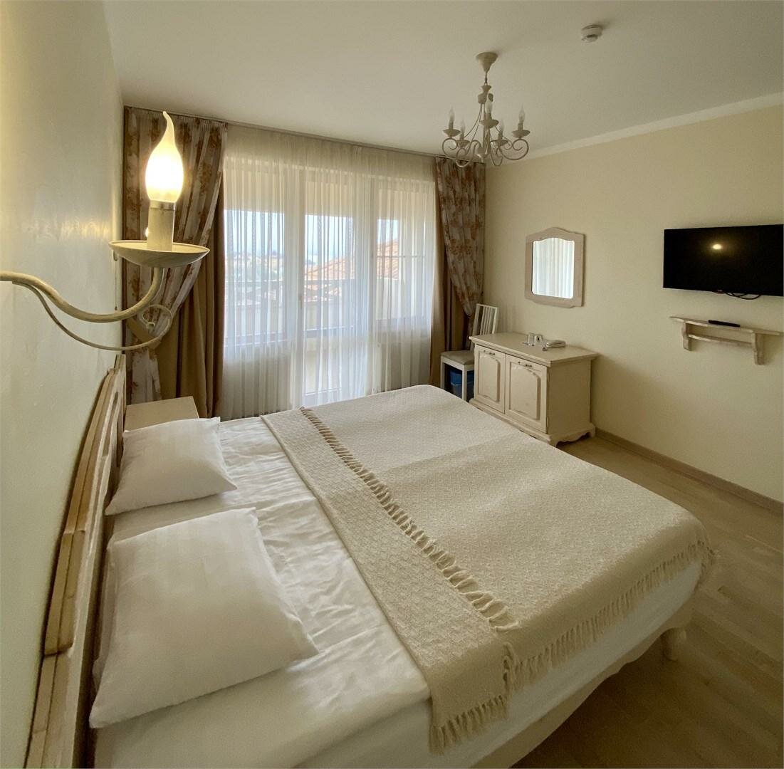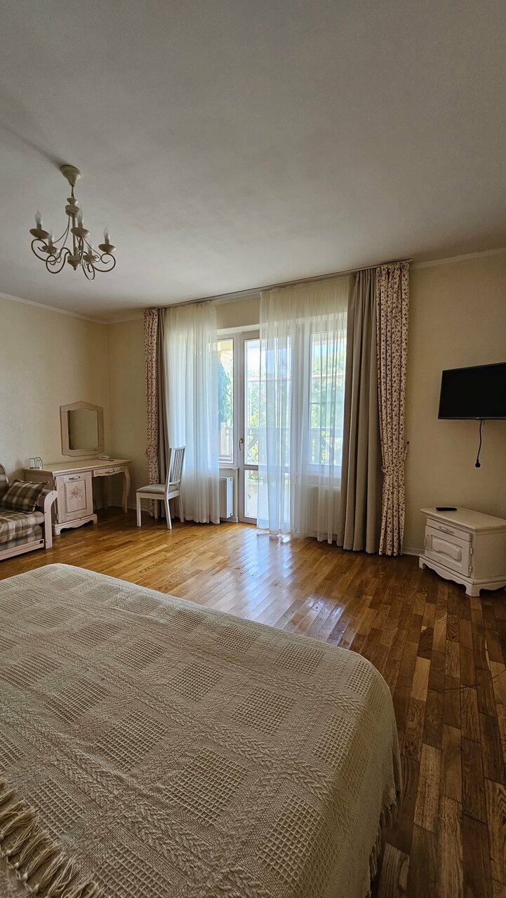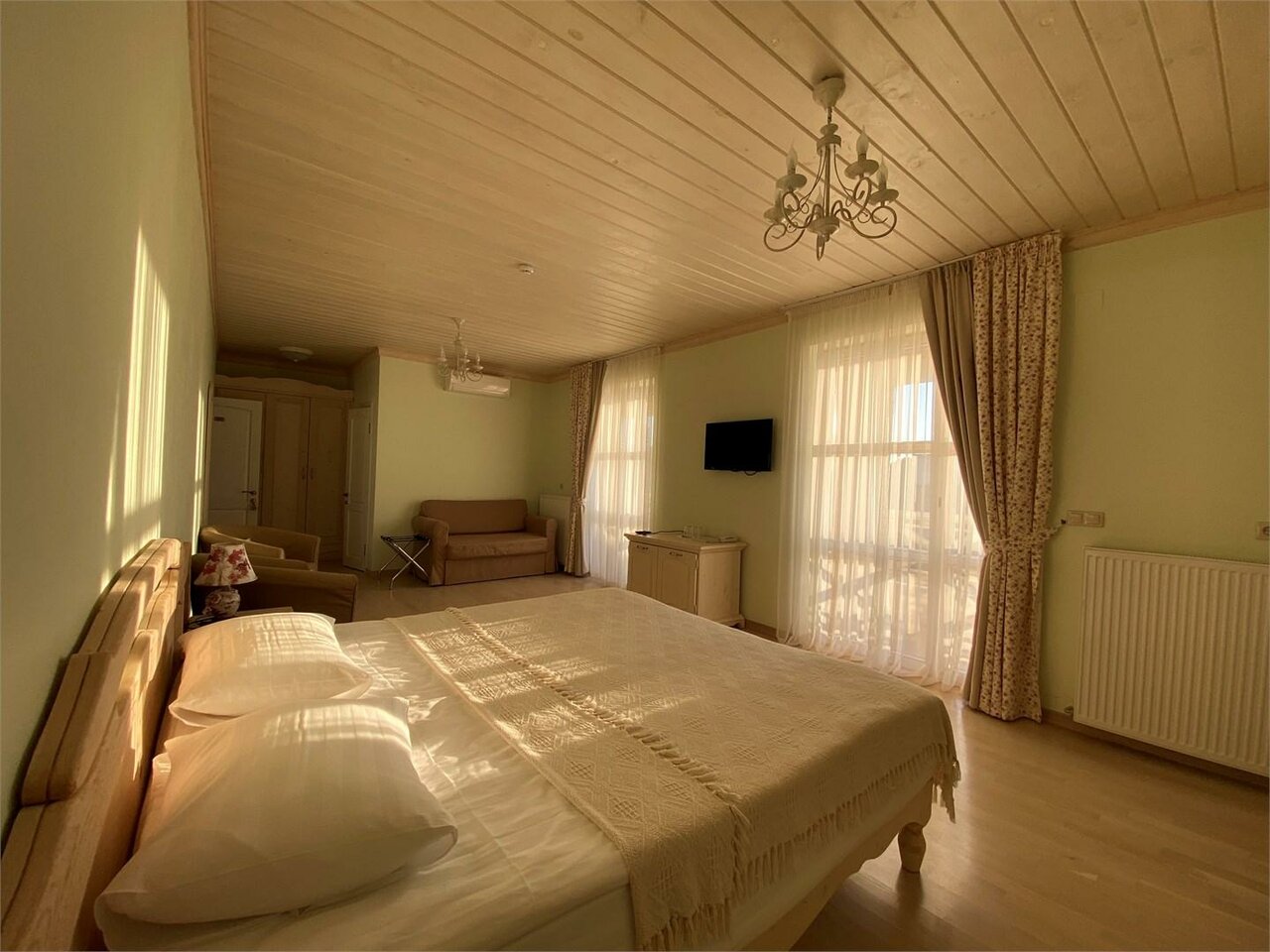 Шикарная гостиница! Просторные светлые номера с балкончиками, влажную уборку делают ежедневно, персонал очень приветливый и отзывчивый. Кухня на высшем уровне, завтраки включены, все очень вкусно и сытно! Территория с множеством красивых цветов, качелями, бассейном с лежаками — очень красиво, вечером подсветка из гирлянд, идеальное место для фотосессий! В 15 минутах ходьбы — Ласточкины гнезда, невероятно красивое место, особенно на закате, непередаваемый вид на море и Анапу с высоты птичьего полета! Из минусов только то, что ближайший пляж ‘800 ступеней’, до которого тяжеловато физически дойти (минут 15-20 по горной местности, а потом ещё спускаться по лестнице), а остальные пляжи значительно дальше расположены (но мы ездили на такси, поэтому впечатления от отдыха не испортились). Дорога к отелю грунтовая, неровная, но на совсем небольшом участке. Тихое место для комфортного и романтического отдыха!
