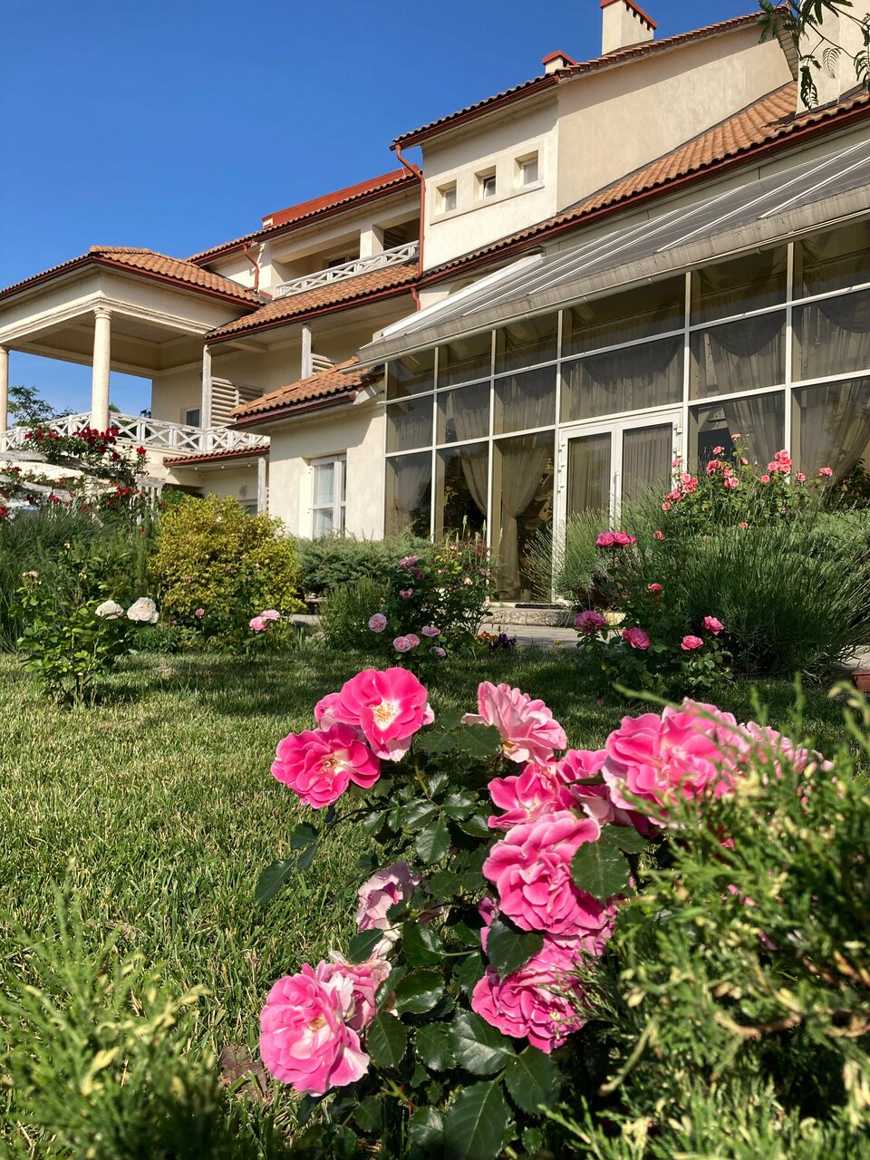 Просто чудесное место! Настолько с любовью всё организовано! Очень вкусные завтраки, море цветов, прекрасный вид, ухоженная территория, отличный бассейн (на ночь укрывают тентом), чудесный персонал. Интерьеры как номеров, так и всех помещений настолько со вкусом оформлены — восторг! Поклонники прованса особенно оценят свежесрезанные цветы с садовых клумб в вазочках на столах ресторана. По-настоящему отдохнули здесь душой. Если бы не обстоятельства, с удовольствием доотдыхали бы здесь запланированные дни. Из особенностей: непривычная для городских жителей горная дорога на подъезде к Дому. Но она небольшая. От души благодарим за гостеприимство! С удовольствием вернемся!