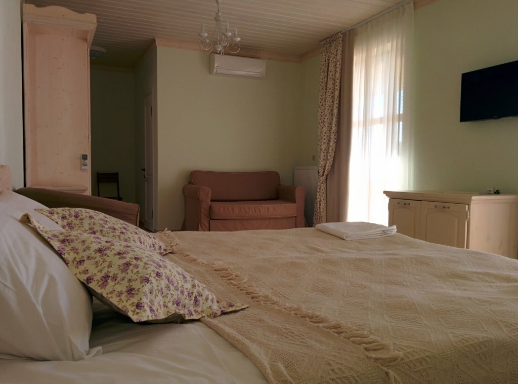 Мы остались очень довольны своим пребыванием здесь. Все комфортно. Наполнение номера продумано. Есть все необходимое (не стану перечислять) для удобного проведения времени. Кровать большая с удобным матрасом. Душевая тоже продумана — все чисто, хорошие сан-гигиенические предметы, набор новых полотенец полноценный, сама душевая комфортная по размеру. Порадовал Wife. Интересно оформлена гостиная-столовая — с камином и красивым интерьером. Завтрак тоже не оставил равнодушным — особенно блины в масличную неделю. Сергею особое спасибо за доброжелательность и гостеприимство. Рекомендую этот отель. Проверено. Время мы здесь провели с удовольствием.