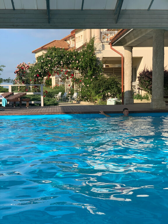 Фантастический семейный отель, зелёный, в стиле французского прованса. Заезжать лучше с улицы центральная, машина легко проезжает и дорога на 80% из асфальта Прекрасное домашнее питание, приготовят вкусно и с душой. Бассейн прохладный, но быстро привыкаешь. Номера светлые, чистые, правда уборка по требованию, а не автоматическая. Полотенца так же меняют по просьбе, а не ежедневно. Никогда бы не подумала, что мне понравится в Анапе, но туда точно вернёмся, тем более, что забыли очень важную детскую вещь
